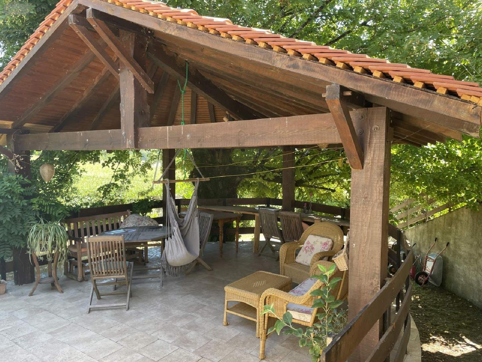 CELLES - En campagne, dans un hameau au calme, sur un terrain clos et arboré de 2142 m², maison contemporaine, édifiée en 1989 sur sous-sol complet semi-enterré, en parpaing, de 142 m² habitables environ, sur un niveau à vendre à Celles en Dordogne (24). Comprenant une entrée desservant d'un côté un séjour de 42.68 m² sur carrelage avec cheminée à insert (avec répartiteurs de chaleur), une cuisine aménagée de 14,69 m² (placards haut et bas, comptoir), une pièce passante de 11.10 m² sur carrelage, une salle d 'eau/wc de 2.53 m² (douche, wc, lavabo sur colonne), une chambre de 9.85 m² sur carrelage, de l'autre côté un dégagement desservant 3 chambres de 10.55, 9.92, 12.07 m sur moquette et sur lino, un bureau de 9.89 m² sur lino avec placards, une salle de bains de 5.25 m² sur lino (baignoire d'angle, bidet, une vasque sur meuble bas, sèche serviettes), un wc indépendant. En sous-sol, un garage de 32 m² sur chape, cave de 28.22 m², une pièce de 22 m² aménageable, une chaufferie. Assainissement individuel (non conforme). Chauffage central fuel et climatisation réversible dans 2 pièces. Menuiseries bois simple et double vitrage, et PVC double vitrage. Volets bois et un volet roulant PVC électrique. Terrasse couverte de 20 m² au sol environ avec un local à usage de buanderie. Joli jardin arboré et vallonné avec coin barbecue, abri de jardin et abri de voitures. Classe énergie : D - Classe climat : D - Montant estimé des dépenses annuelles d'énergie pour un usage standard : 2470 à 3460 ? (base 2021) - Prix Hon. Négo Inclus : 199 020 ? dont 7 % Hon. Négo TTC charge acq. Prix Hors Hon. Négo :186 000 ? - Réf : 077/1627 - Les informations sur les risques auxquels ce bien est exposé sont disponibles sur le site Géorisques: www.georisques.gouv.fr