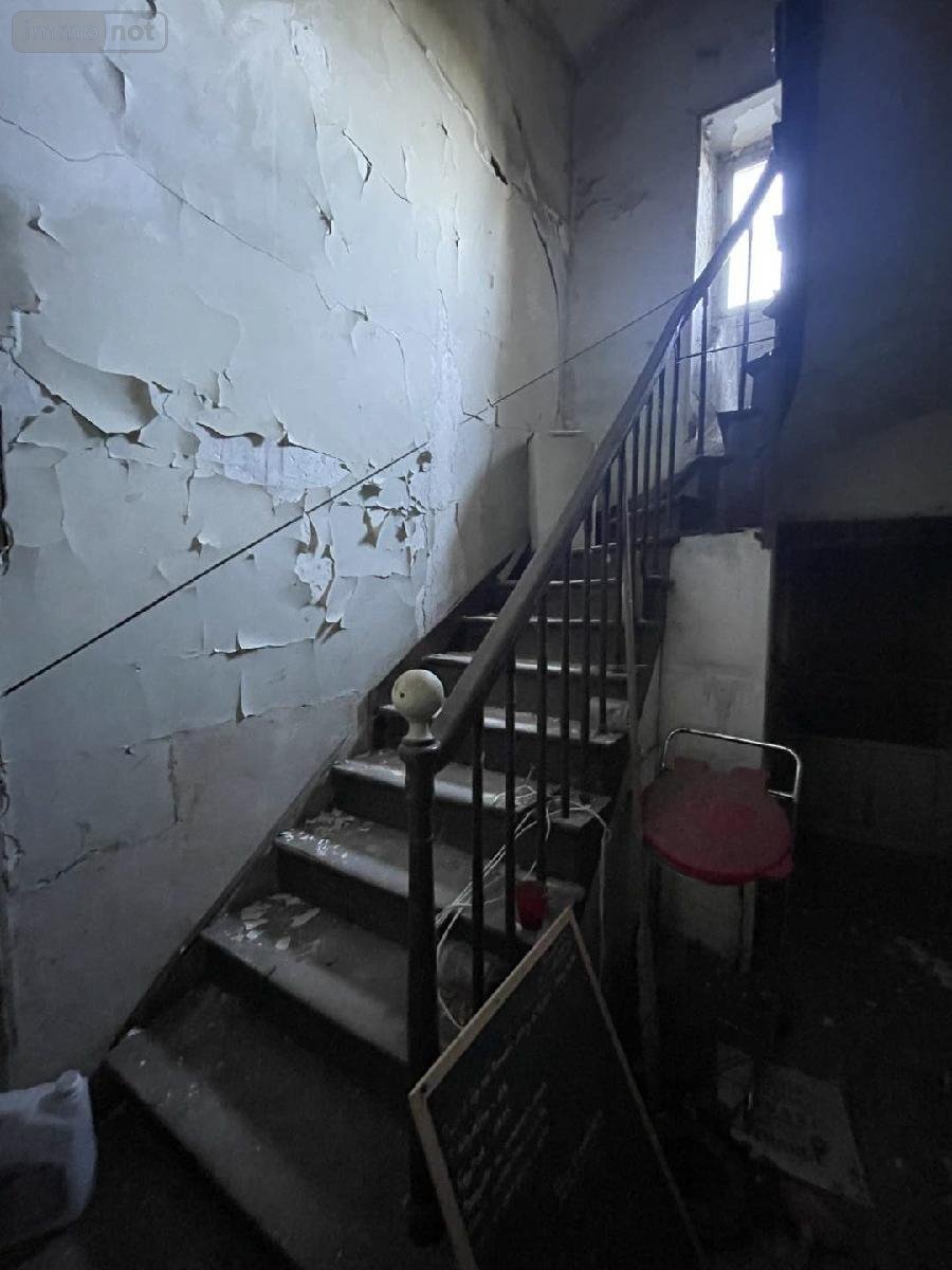 Étage - partie habitation : Palier et dégagement desservant 5 pièces à usage d'habitation, pour une surface d'environ 92,75 m². Ensemble entièrement à rénover, permettant la création d'un ou plusieurs logements.