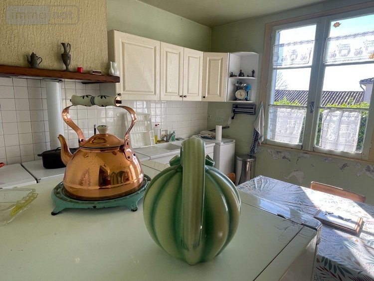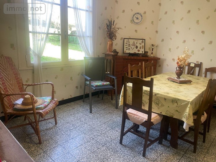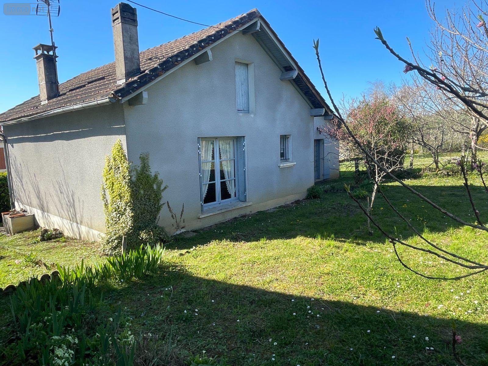 A flanc de coteau, sur un terrain de 2763 m², maison individuelle en briques, édifiée en 1950 (puis deux additions de construction en 1965 et 1985), de 120 m² habitables sur un seul niveau à vendre à Chantérac en Dordogne (24). Comprenant à l'étage/rez de jardin, une entrée sur une cuisine aménagée de 15.30 m² (placards haut et bas), une salle à manger de 17.42 m² sur dallage (cheminée non opérationnelle), un dégagement desservant 2 chambres de 15.79 et 15.45 m² sur plancher, une salle d'eau (lavabo, cabine de douche), un wc indépendant. Accessible via une véranda de 7 m², un autre séjour de 27 m² sur carrelage avec cheminée ouverte, une chambre de 13.42 m² sur moquette. Grenier (non visité). En rez de rue, 2 pièces à usage de sous-sol/stockage/chaufferie de 36 et 42 m². Pompe à chaleur air/eau (installée il y a 2 ans) avec radiateurs en fonte. Cumulus électrique pour la production d'eau chaude. Menuiseries bois simple vitrage, volets bois et métalliques. Garage indépendant de 31 m² sur chape. Un ancien toit à cochon. Jardin en deux parties dont une avec ligne moyenne tension au-dessus.