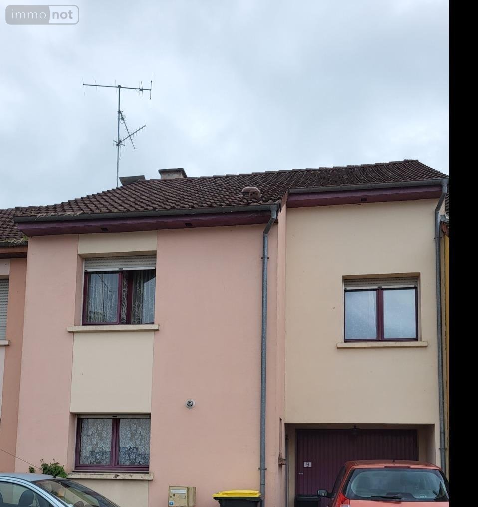 En impasse, maison mitoyenne des deux cotés comprenant : -au rez-de-chaussée : hall, cuisine, séjour donnant sur terrasse et terrain clos, wc -à l'étage : palier, quatre chambres dont une donnant sur balcon, salle de bains Grenier au dessus. Garage accolé. Terrain clos 1a 32ca.