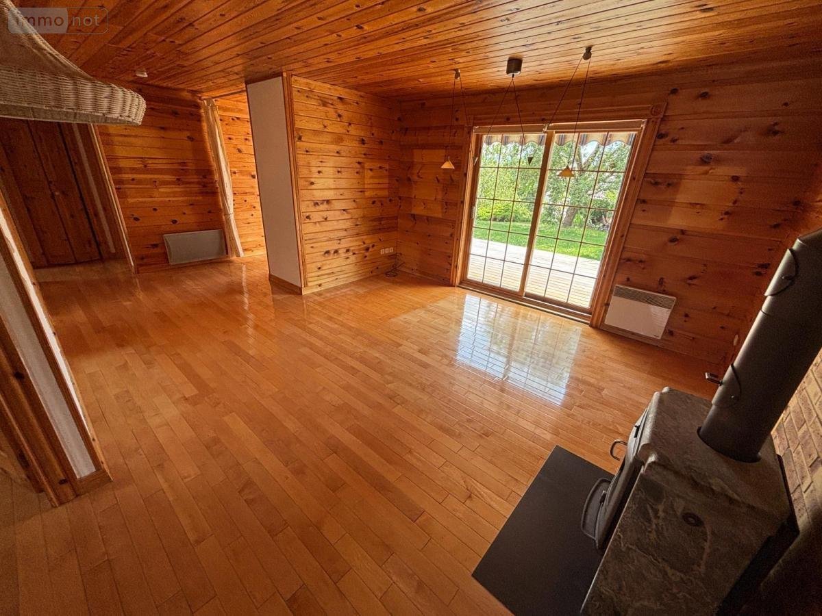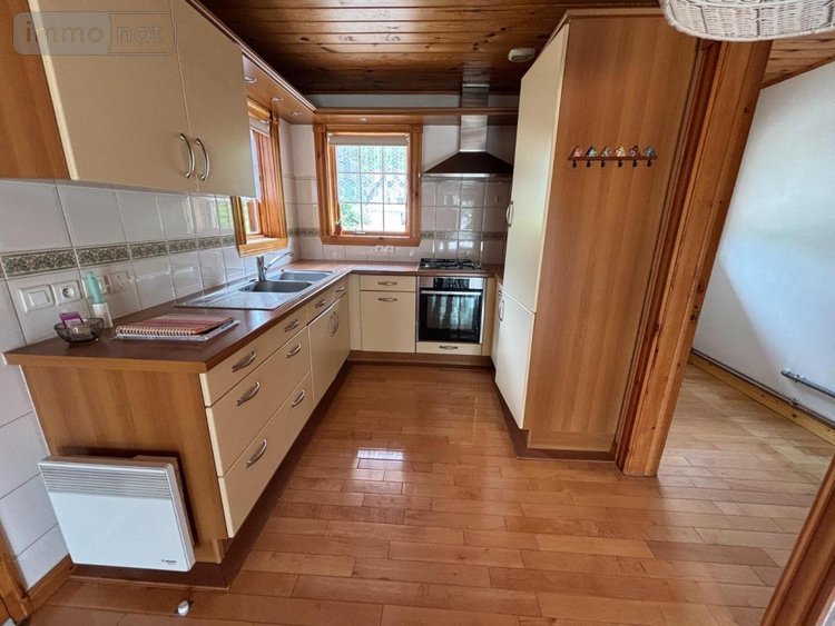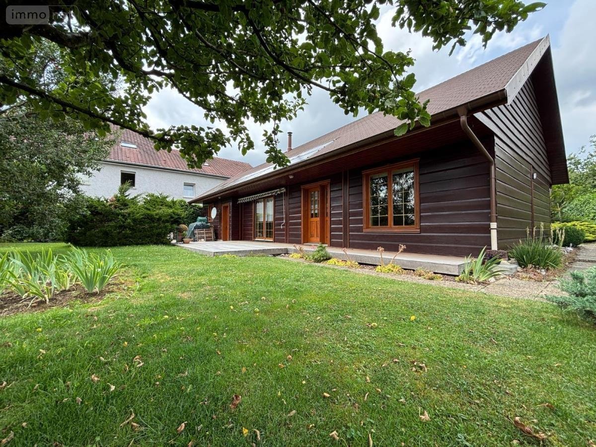 Maison plain-pied de 3 pièces (Construction canadienne "Chalet QUEBEC" d'environ 68 m² habitables), située en campagne (proche frontière), composé d'une entrée (avec placard), cuisine équipée ouverte sur salon-salle à manger (avec accès terrasse en rez-de-jardin), deux chambres (dont une avec dressing), salle d'eau, WC. Combles au-dessus. Garage accolé. Terrain attenant en nature de sol, cour et jardin, le tout sur 9 ares 04. 12 panneaux photovoltaïques (avec contrat de revente à EDF pour env. 800 €/an) Les informations sur les risques auxquels ce bien est exposé sont disponibles sur le site Géorisques : www.georisques.gouv.fr