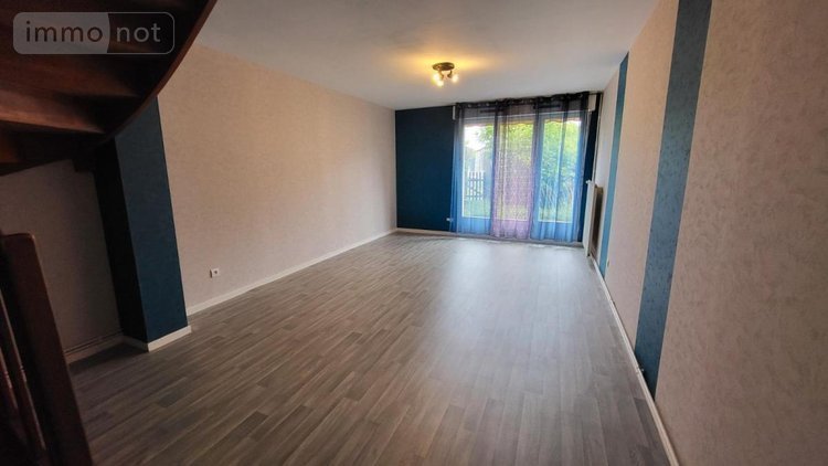 En impasse, maison mitoyenne des deux cotés comprenant : -au rez-de-chaussée : hall, cuisine, séjour donnant sur terrasse et terrain clos, wc -à l'étage : palier, quatre chambres dont une donnant sur balcon, salle de bains Grenier au dessus. Garage accolé. Terrain clos 1a 32ca.