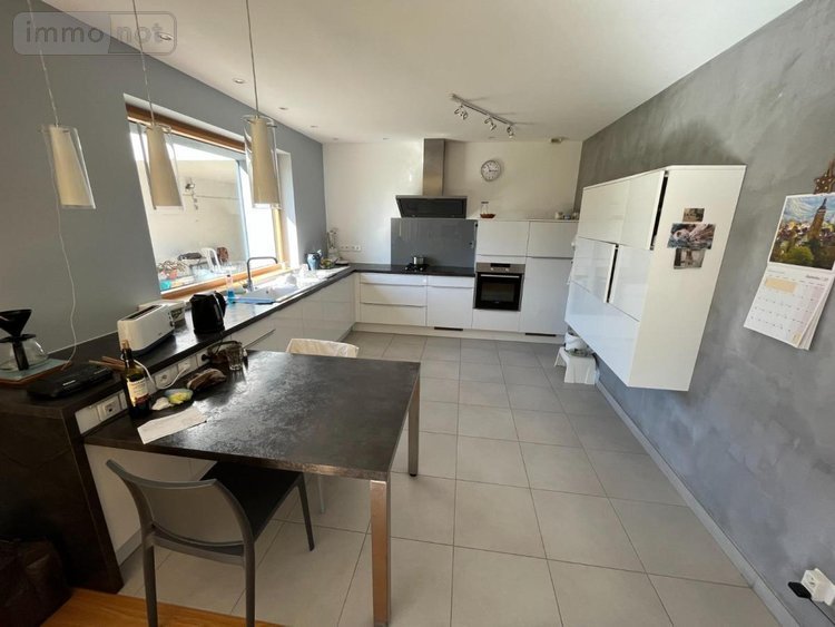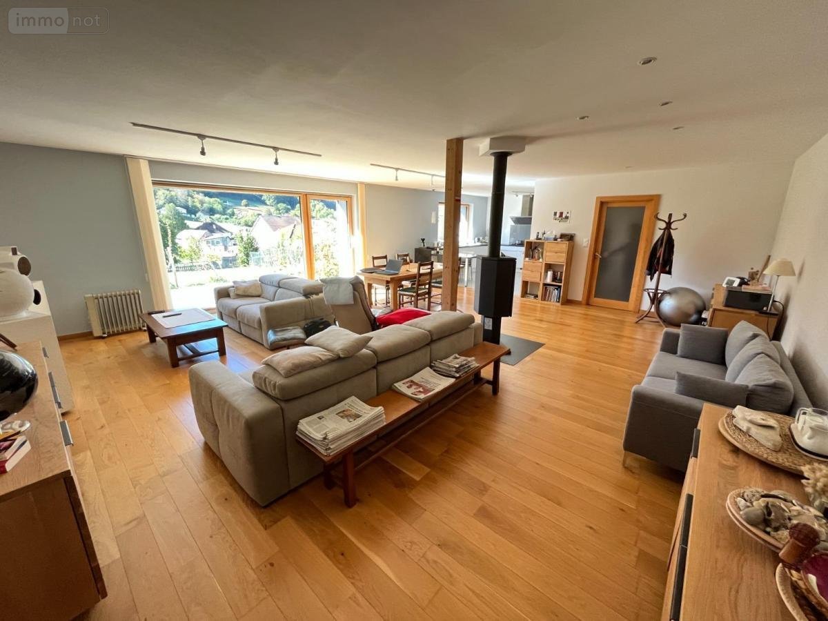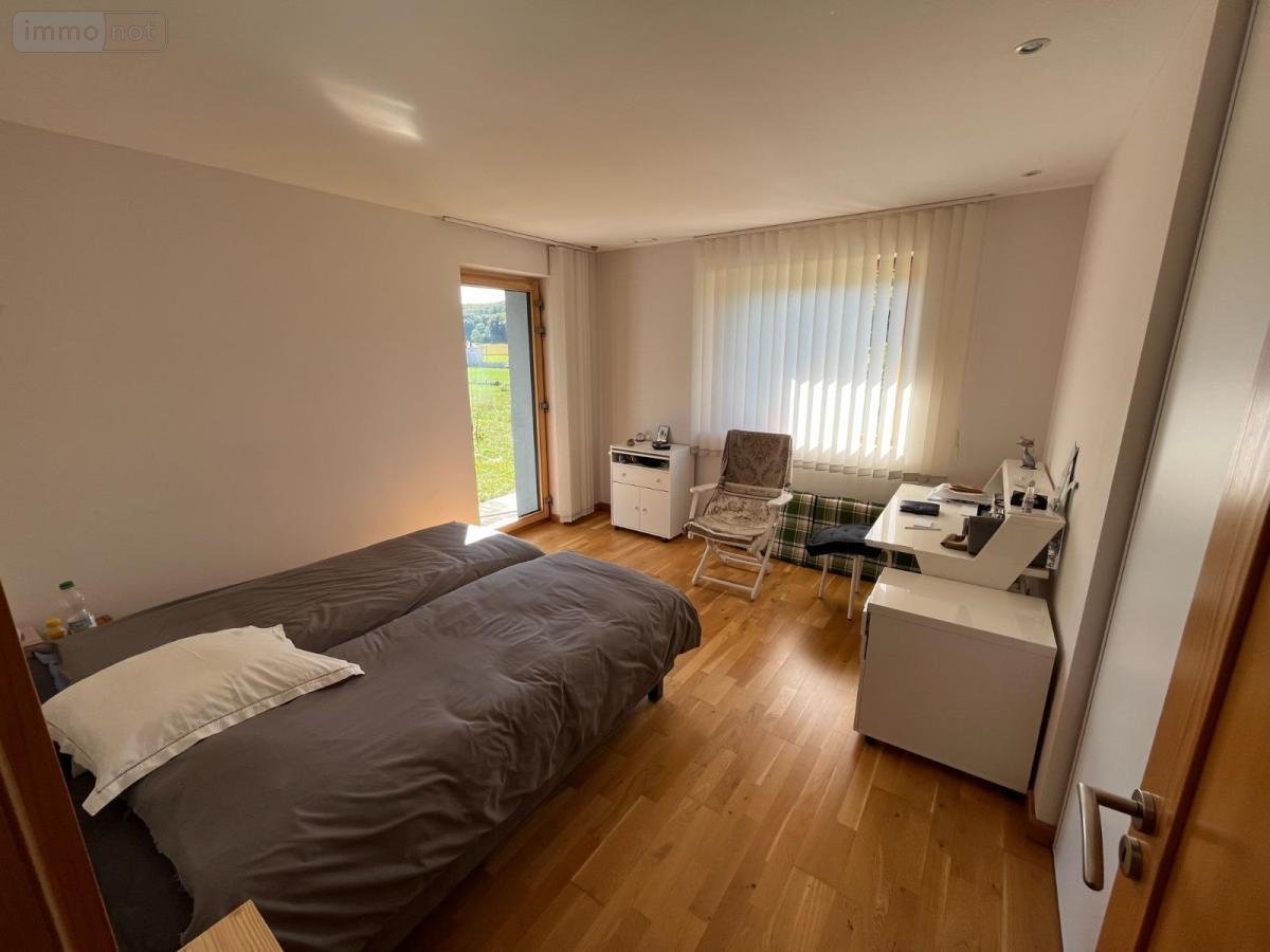 Maison de 4 pièces (Construction moderne de 2010 "Maison passive", de 174 m² habitables), située en campagne, proche frontière suisse, comprenant : - au sous-sol : dégagement-rangement-local technique, cave à vin. - au rez-de-chaussée : entrée (avec placard-penderie), buanderie, atelier (avec accès extérieur), garage et dans le prolongement de plain-pied, dégagement, cellier, WC (avec lave-mains), cuisine équipée ouverte sur vaste salon-salle à manger (env. 57 m², donnant sur terrasse), dégagement (avec placard-dressing), WC, deux chambres (dont une avec accès terrasse), salle d'eau. - à l'étage (au-dessus de la 1èere partie) : palier, une grande pièce (actuel bureau), grenier (aménageable). Terrain attenant en nature de sol, cour, vergers et jardin, le tout sur 41 ares 80. Les informations sur les risques auxquels ce bien est exposé sont disponibles sur le site Géorisques : www.georisques.gouv.fr
