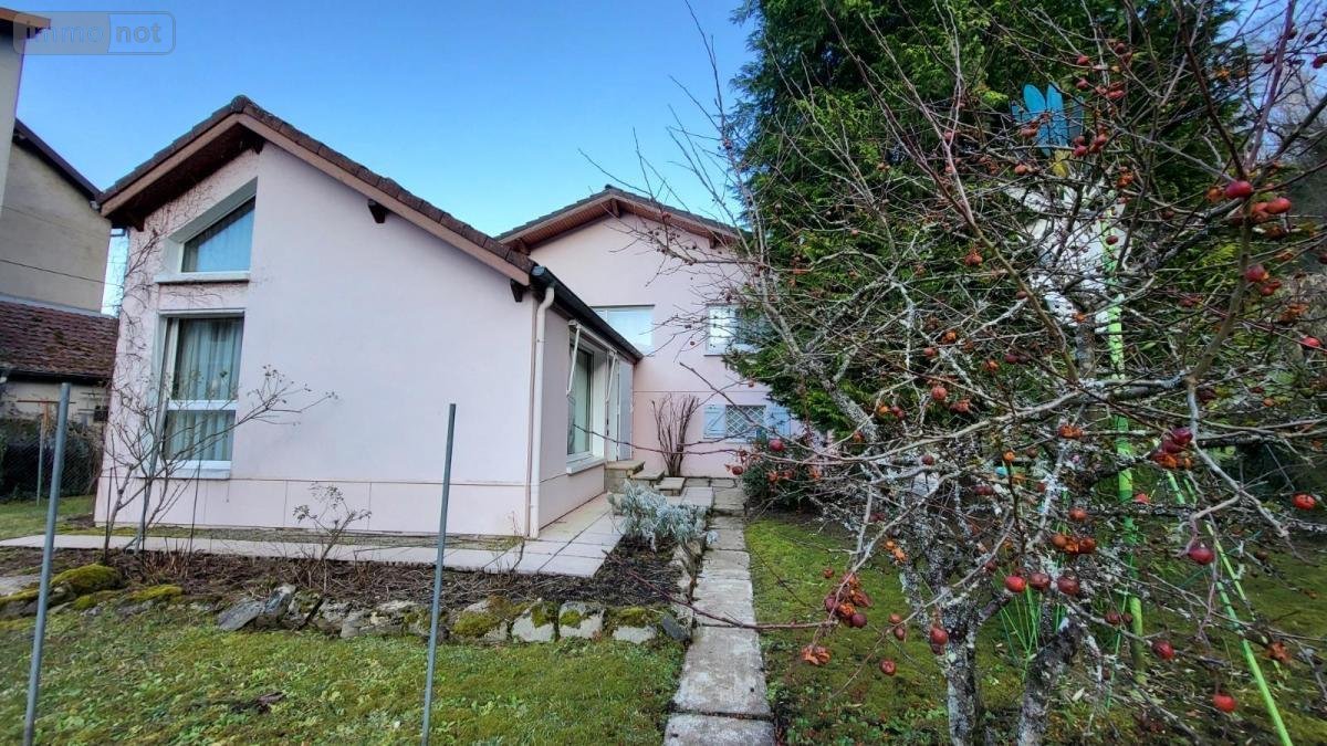 Maison construite en 1956 et agrandit en 1985 comprenant : -au sous-sol : deux pièces, chaufferie- buanderie avec wc, atelier, garage avec porte électrique, -au rez-de-chaussée surélevé : accès par terrasse couverte, cuisine, séjour avec cheminée foyer ouvert, deux chambres, salle d'eau avec wc, une pièce donnant accès à une pièce en souplex (atelier) donnant sur terrasse et terrain. Terrain attenant 17a 46ca dont partie en zone constructible (demande de CU en cours)