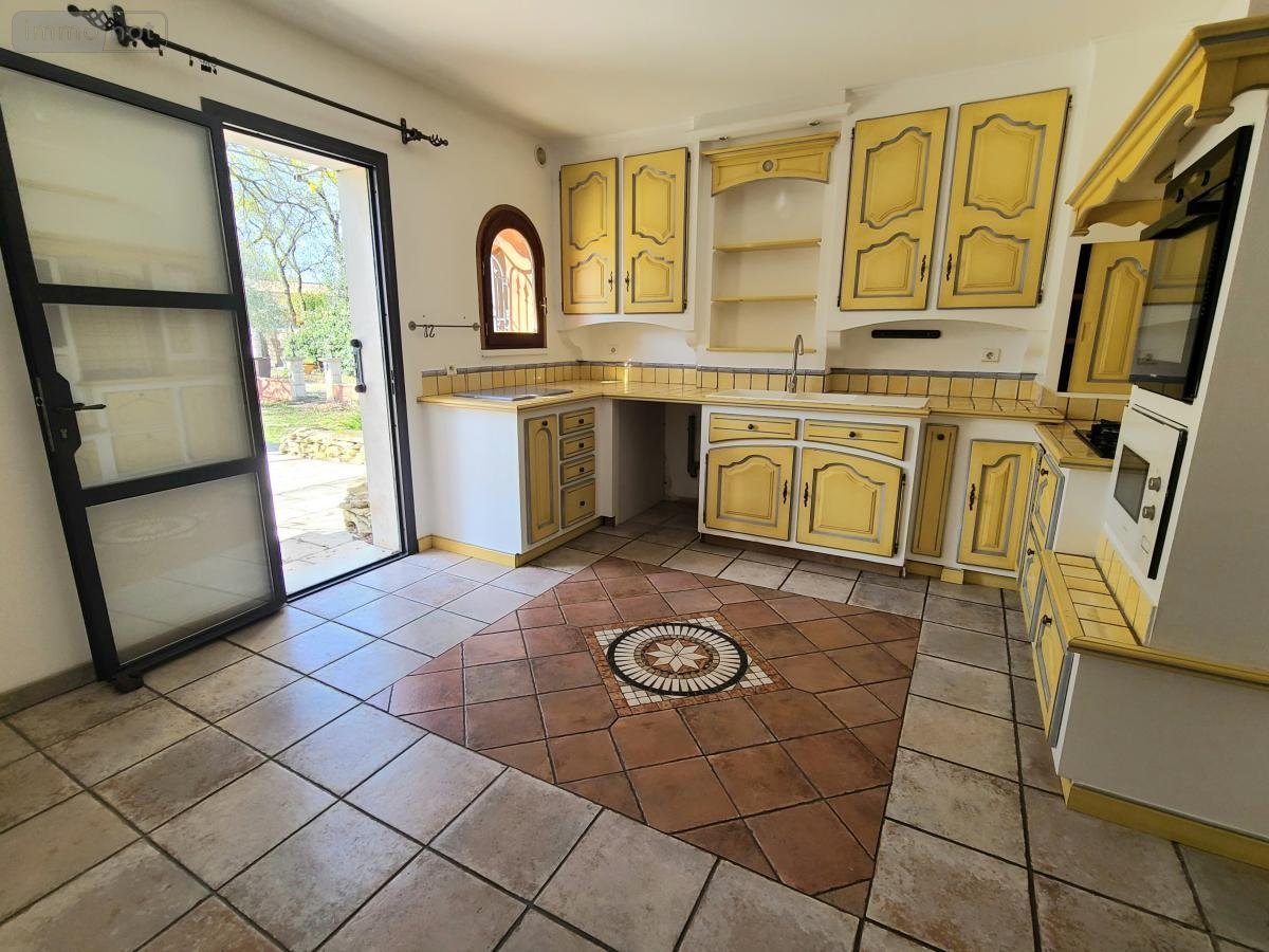 - en RDC : Entrée, Cuisine équipée Provençale donnant sur Terrasse dallée, Salle à Manger, double Salon avec Cheminée, 2 Chambres, Salle de Bains + Douche, WC indépendant, Buanderie et Chaufferie,