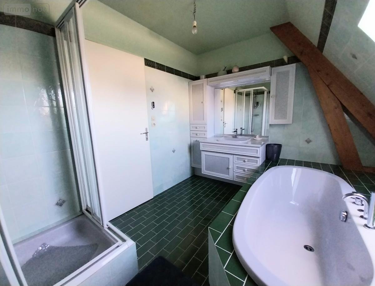 Découvrez cette maison traditionnelle de 130 m² construite en 1990 , comprenant au Rdc : Entrée, salle salon de 27 m2 avec poêle a bois et accès à l'étage, wc, un bureau, cuisine de 12 m² attenante à une salle de 14 m² avec baie vitrée et prolongée d'une pièce pour la buanderie/chaufferie.