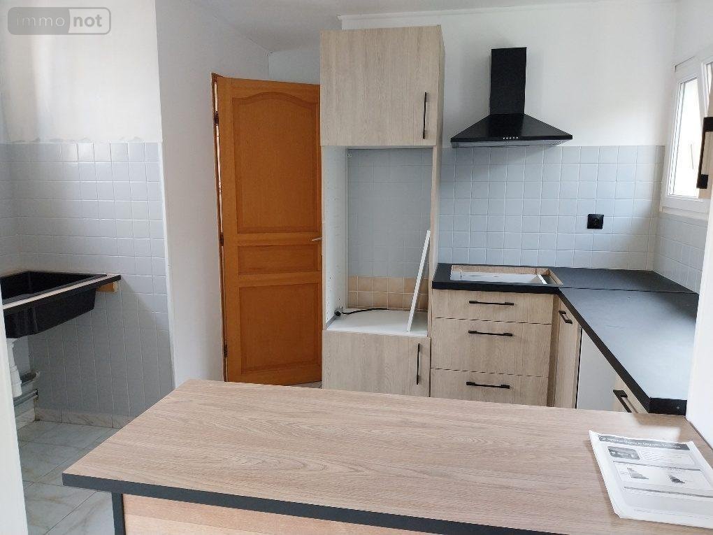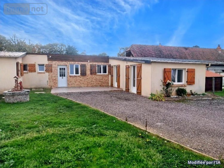 Maison de plain pied comprenant : salle salon de 26.5 m² ouverte sur petite cuisine aménagée, dégagement, wc, salle de bain, buanderie, 3 chambres (14,17 et 16 m2) dont 2 en enfilade.