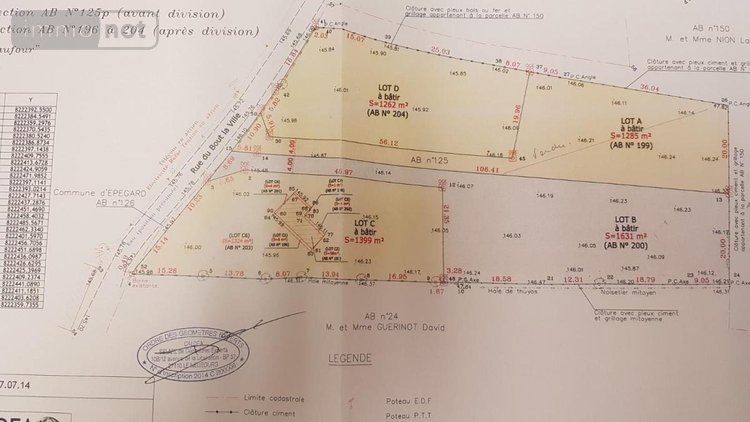 Terrains à bâtir situé au calme à EPEGARD à 5 minutes de LA NEUBOURG comprenant 2 lots : lot C de 1399 m² édifié d'un bâtiment, et lot B en drapeau de 1631 m².
