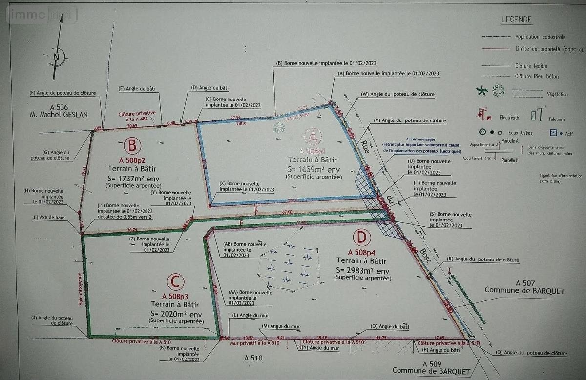 Terrain à bâtir à viabiliser de 1737 m² lot arrière : accès de 70 m à créer depuis la voirie