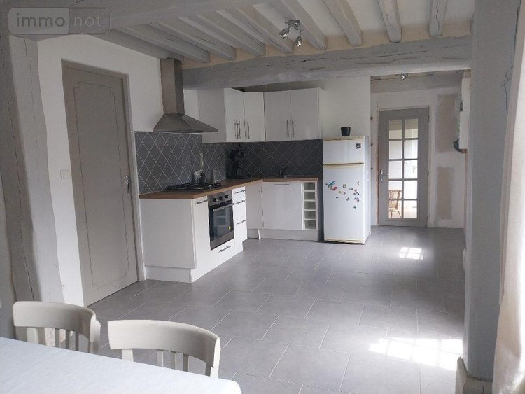 Maison normande rénovée comprenant : salle salon de 22 m² et cuisine ouverte de 13.6 m² aménagée et équipée, salon de 15 m² avec cheminée insert, une chambre, wc, salle de douche, un bureau, buanderie/chaufferie.