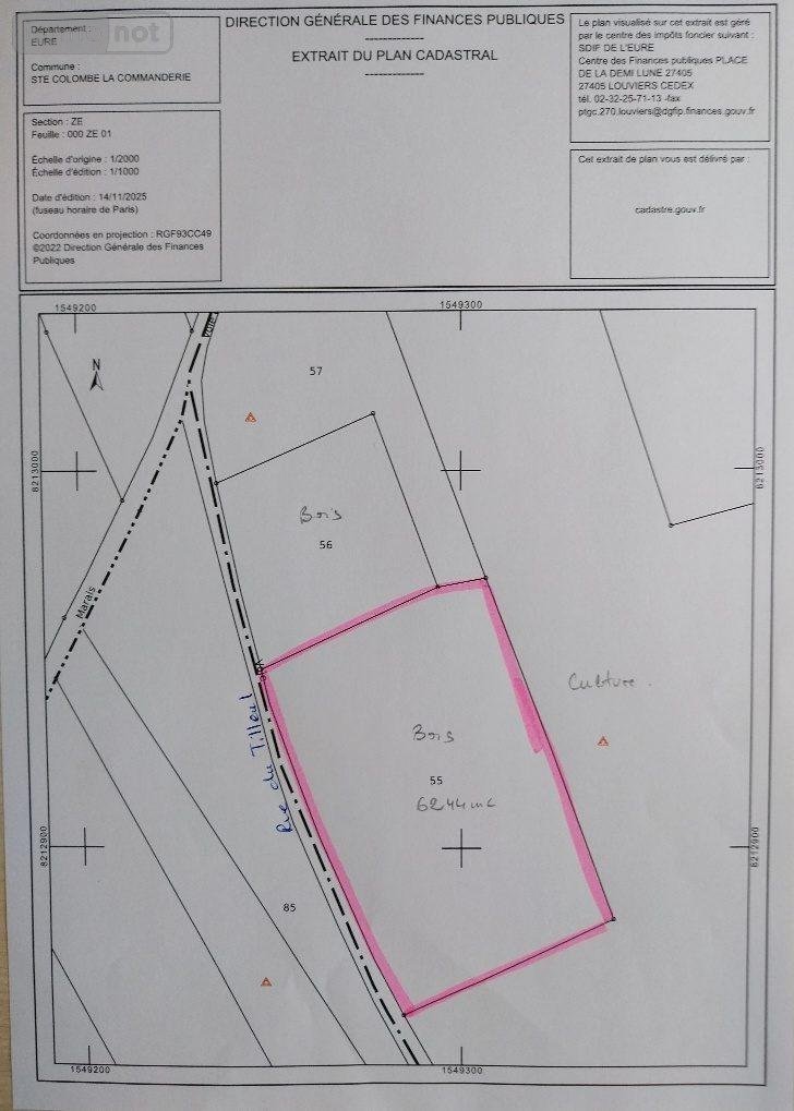 Bois taillis de 6244 m² situé rue du tilleul sur la commune de SAINTE COLOMBE LA COMMANDERIE, avec un accès facile desservi par la voirie.