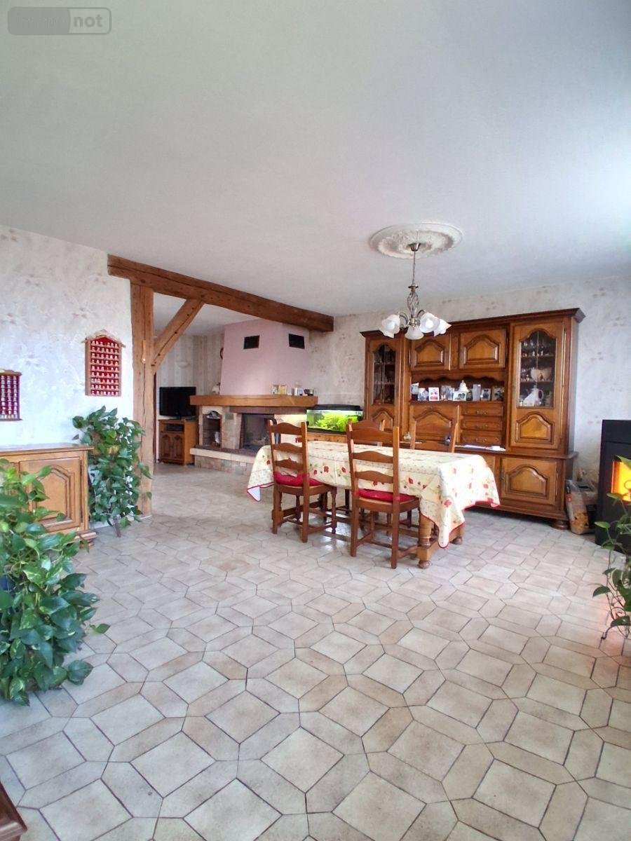 - Au rez-de-chaussée : une entrée sur salon - salle à manger avec poêle à granulés et cheminée avec insert, une cuisine aménagée et équipée, un couloir desservant une chambre, une salle d'eau et un W.C. indépendant.