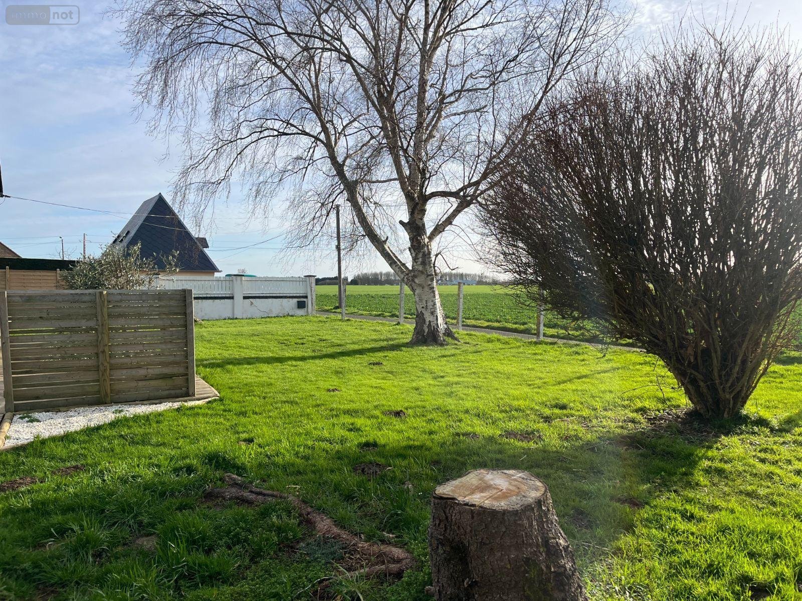 Son terrain clos et arboré de 1 075 m² dispose d'une terrasse et d'un appentis accolé à la maison.