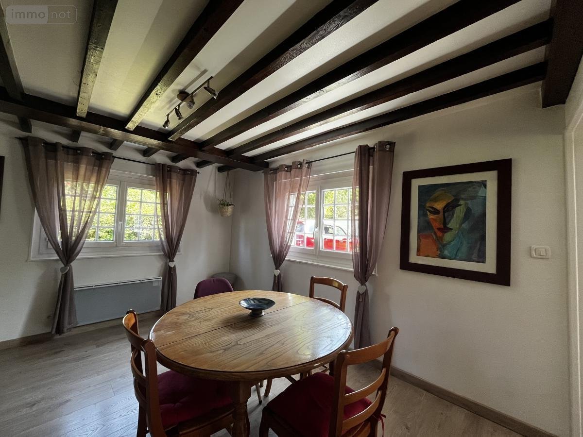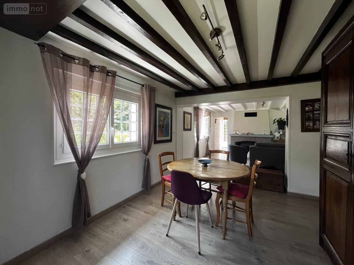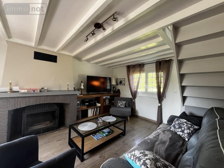 - Au rez-de-chaussée : entrée avec placard, cuisine aménagée et équipée (plaque de cuisson, hotte, lave-vaisselle, four encastré, réfrigérateur encastré), salon avec cheminée insert ouvert sur séjour, W.C. avec lave-mains, salle de bains.