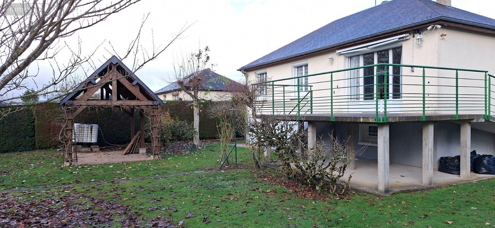 Pavillon de plai-pied edifié sur un terrain clos de 663m². Sous-sol total de 60m². En rez-de-chaussée surélevé avec une rampe d'accès, entrée, sejour avec cheminée insert, cuisine aménagée et équipée, salle d'eau, deux chambres, wc. Charretterie. Double vitrage PVC. Tout à l'égout. Chauffage électrique et bois. DPE F et GES C