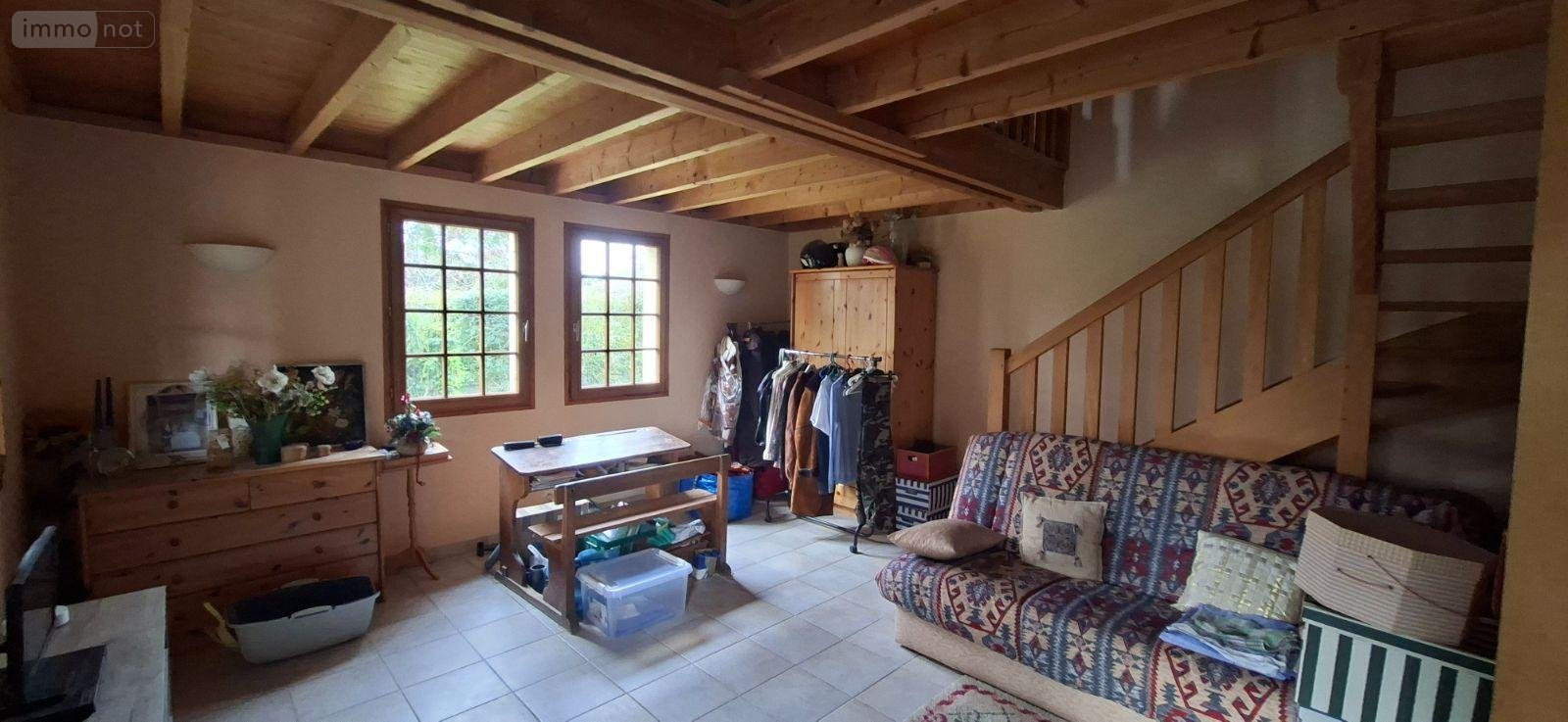 Très belle chaumière composée d'une entrée, un beau séjour avec une cheminée, cuisine aménagée et équipée, wc, salle de bains, un bureau, salon ou chambre avec mezzanine, un cellier et une buanderie. A l'étage : chambre, salle de jeux (ou chambre), dressing, et une chambre avec salle d'eau - autre pièce. Dépendance, abris de jardin, charretterie attenante stationnement deux voitures. Chauffage au gaz. Assainissement individuel. Terrain arboré clos et plat.