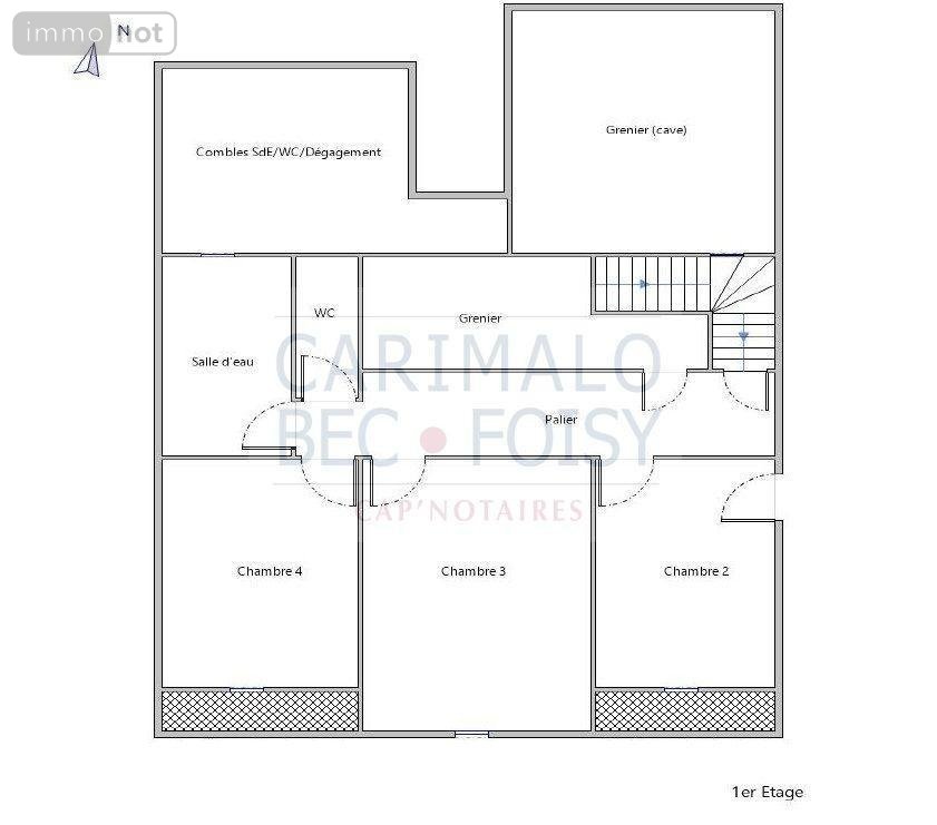 À l'étage: couloir, trois chambres, salle de douche et WC.