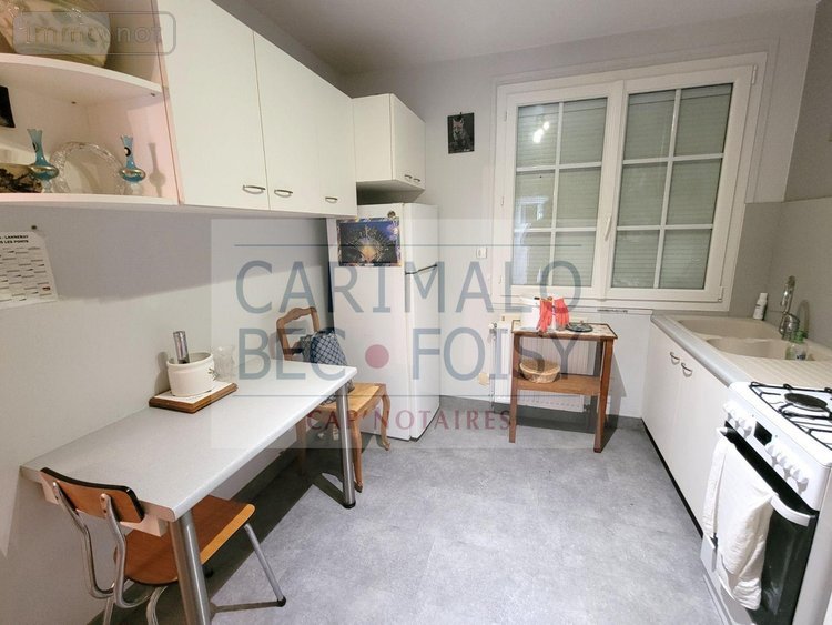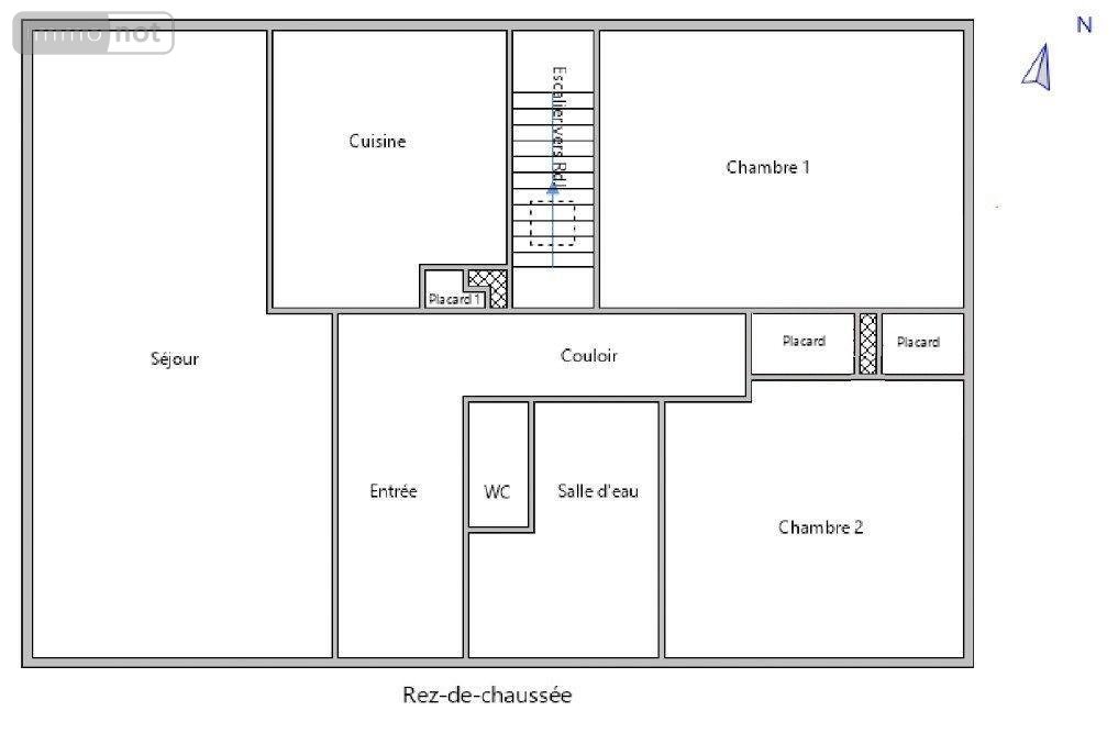 Entrée sur couloir, pièce de vie avec parquet, cuisine aménagée, deux chambres avec placards intégrés, salle d'eau, wc.