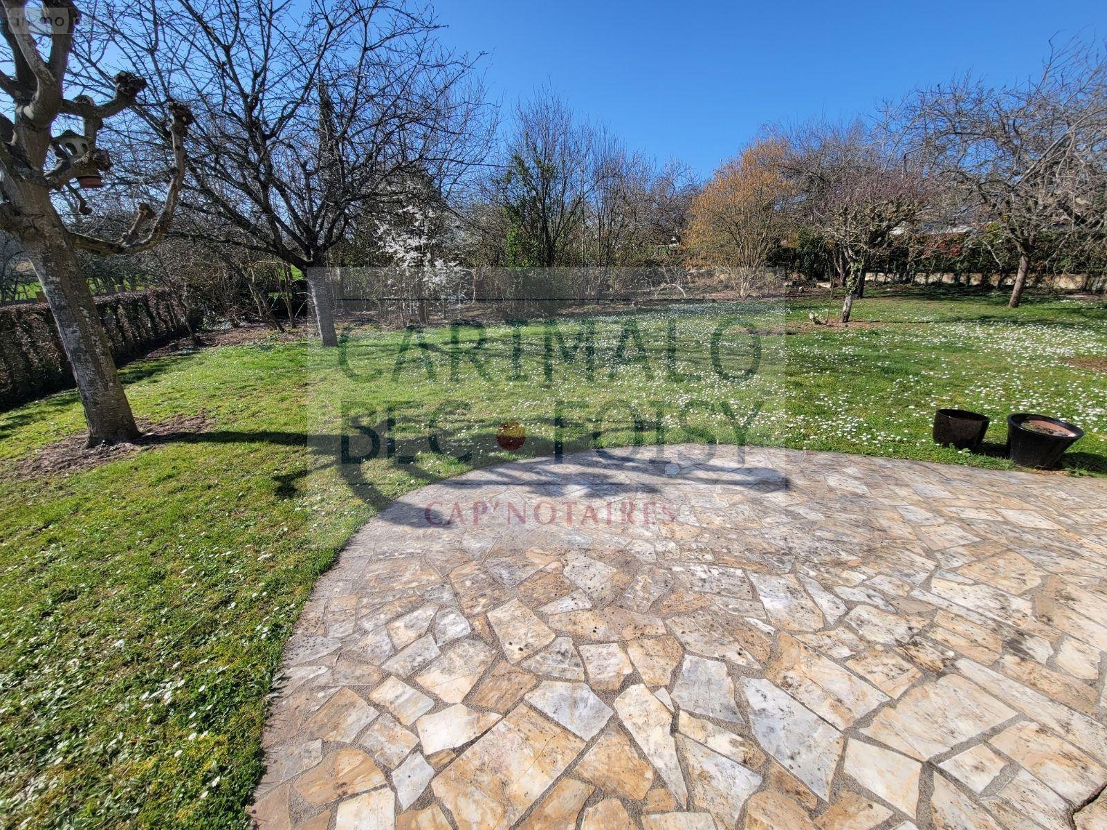 Terrain plat, clos et arboré avec terrasse.