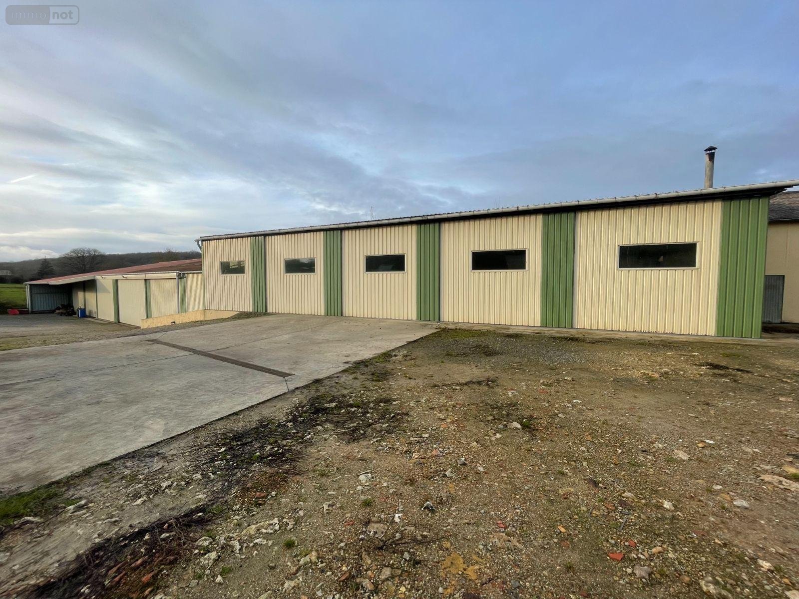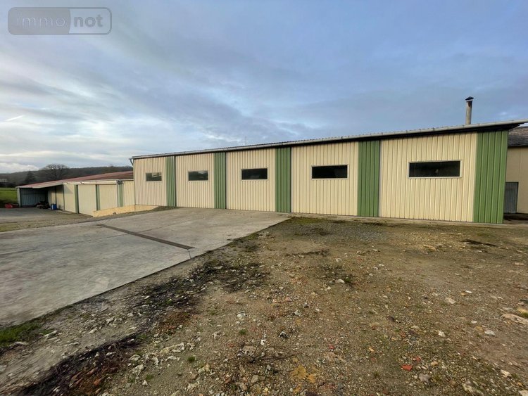 Ensemble de bâtiments/hangars couverts en tôle et sol bétonné avec bureau permettant le stockage de matériels et matériaux.