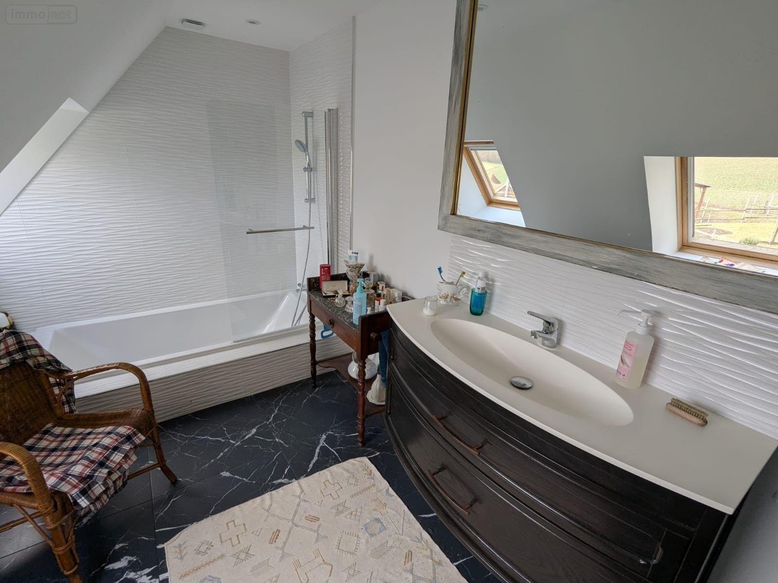 Au rez-de-chaussée : Une cuisine aménagée-équipée avec cheminée ancienne, un séjour-salon, un bureau, un WC suspendu avec lave-mains, une buanderie avec douche.