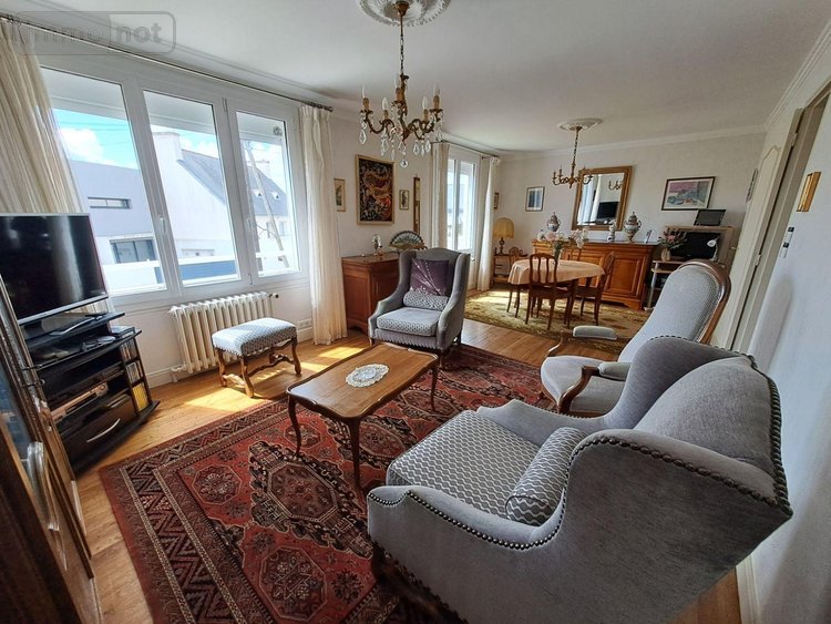 A VENDRE QUIMPER, en impasse dans le quartier du Frugy, maison de 1964 avec extension de 2008. D'une surface habitable d'environ 120 m², elle comprend en rez-de-jardin : entrée, salon séjour, cuisine aménagée, suite parentale avec grande chambre , salle d'eau et WC attenants et à l'étage : trois chambres, salle d'eau et WC. Grenier aménageable d'environ 30m²au-dessus de l'extension. Deux garages en sous-sol complètent la maison. Jardin clos à l'arrière avec terrasse.