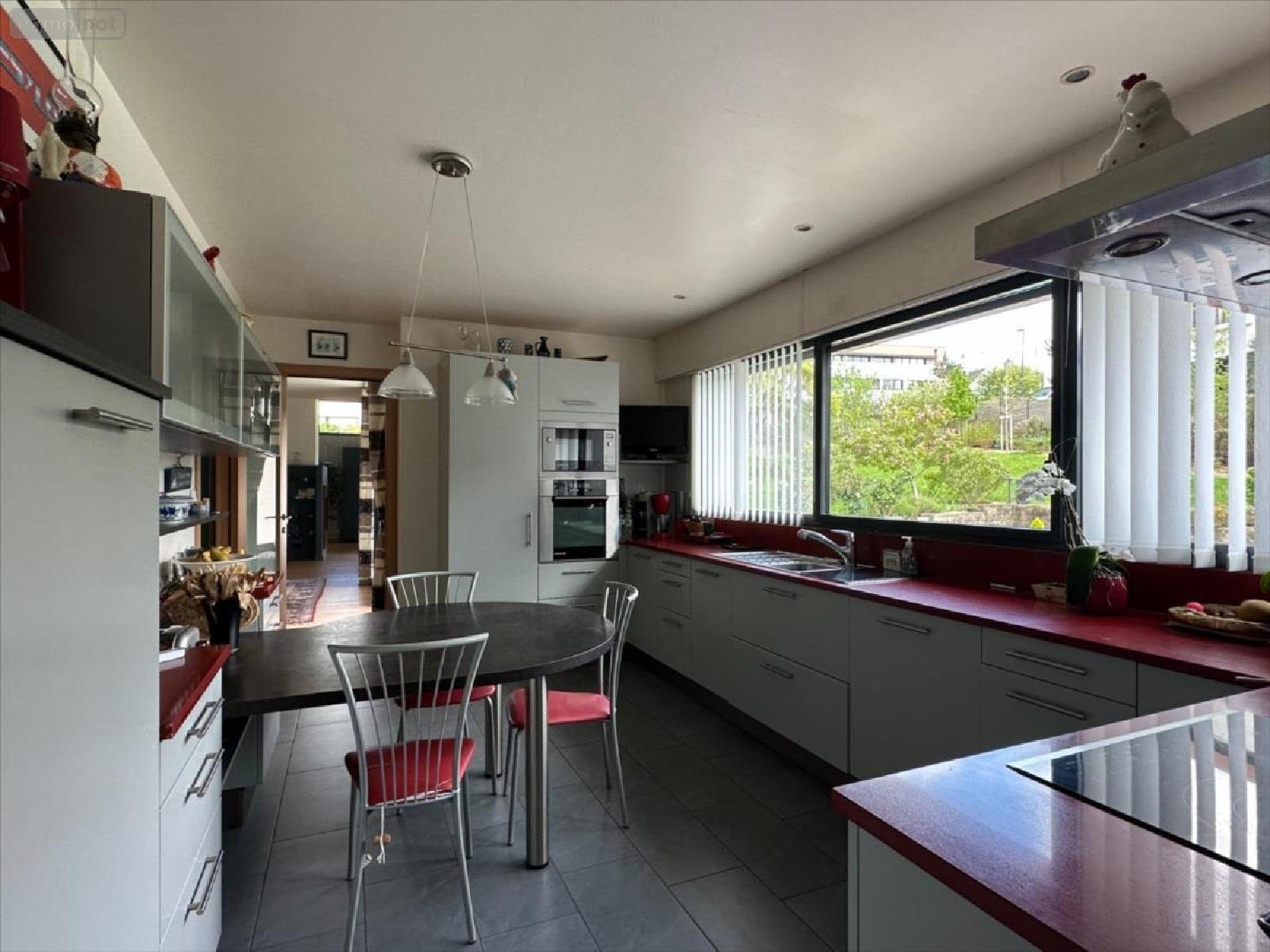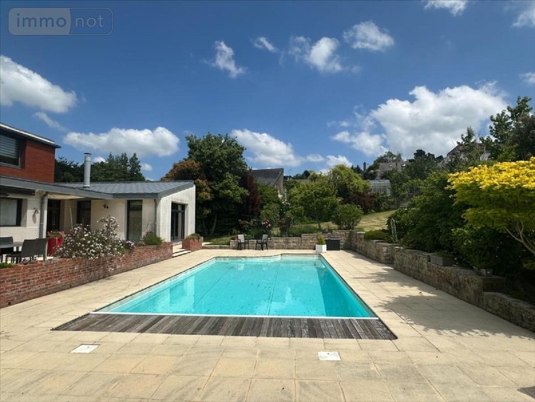QUIMPER SUD,Sur la route des plages, architecture résolument contemporaine pour cette maison de 277 m² idéalement située à proximité des commerces et des transports, qui séduit immédiatement par son design épuré et ses belles prestations. Bâtie sur trois niveaux, son rez-de-chaussée se compose d'un hall d'accueil menant à l'espace de vie principal qui bénéficie d'une surface d'environ 80 m², s'ensuit la cuisine aménagée et équipée avec vue sur le jardin et enfin l'arrière-cuisine. L'espace nuit offre deux chambres, une salle de bains, WC, une suite parentale avec son dressing privatif et sa salle d'eau / WC.L'étage dispose d'un espace bureau très convivial de plus de 35m² combinant belle vue et luminosité.La propriété est complétée d'un sous-sol auquel on peut accéder par un ascenseur, qui comprend un cellier, une cave à vin, une salle de jeux, un local technique, une buanderie, une salle d'archives, un double garage.Côté extérieur, le bien est prolongé par un jardin de 2.513 m² particulièrement soigné et sublimé par une piscine chauffée.
