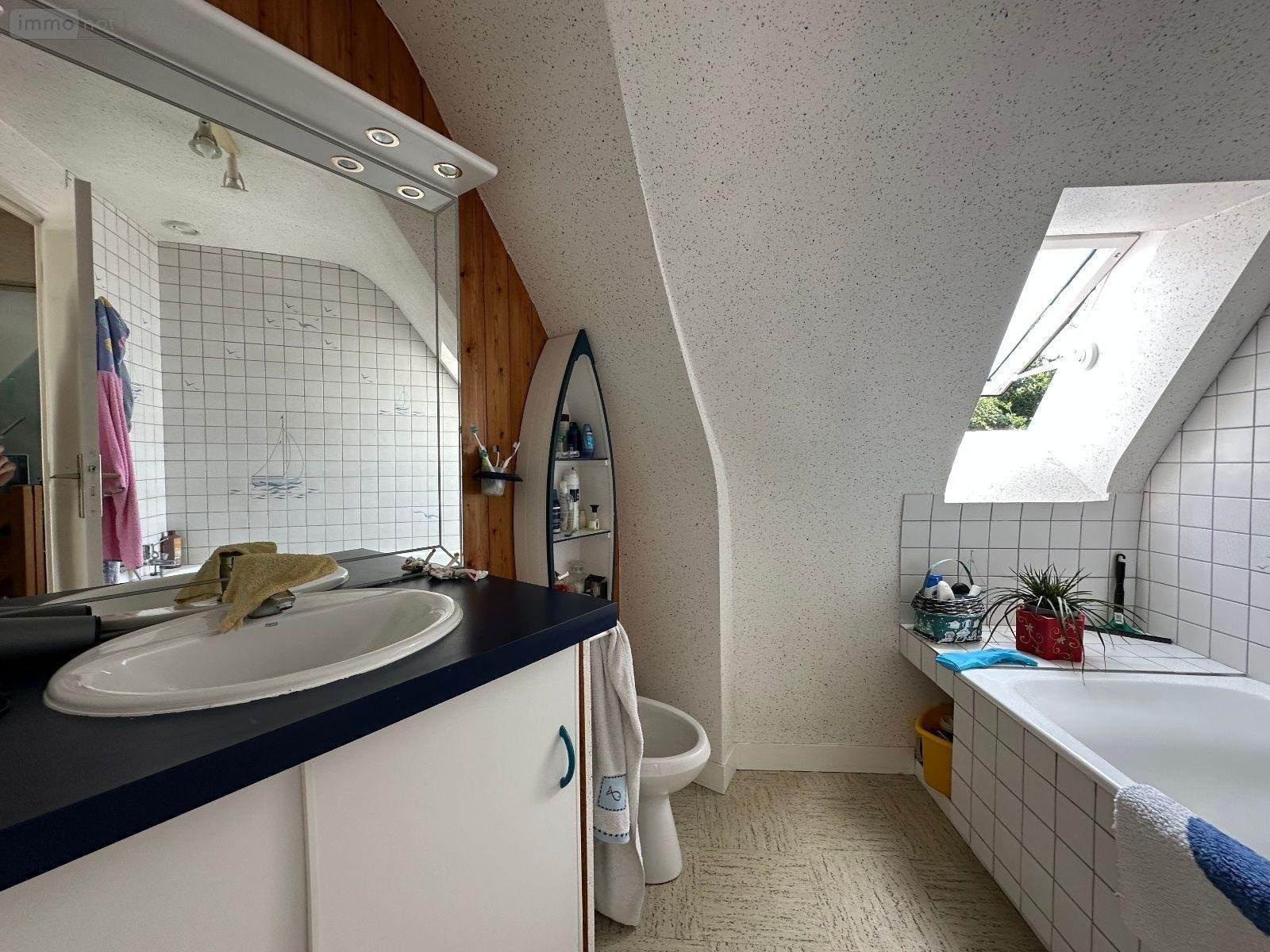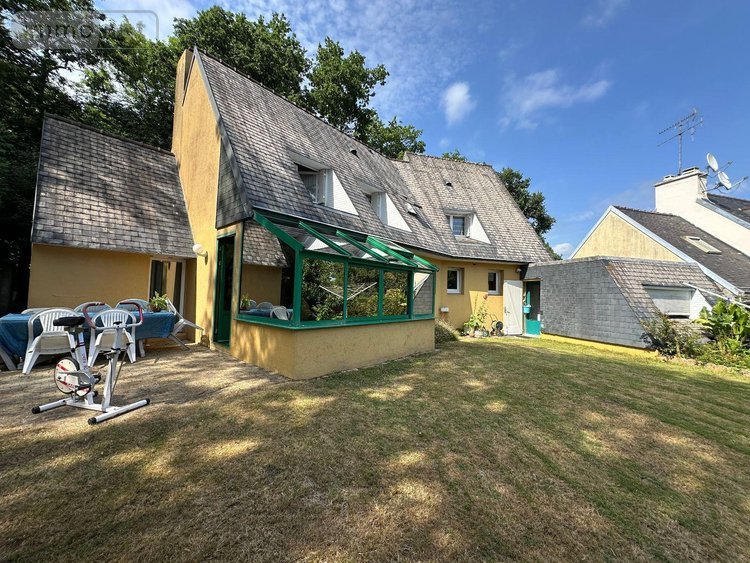 QUIMPER BRADEN - Limitrophe BRADEN/KERADENNEC, vaste maison d'architecte des années 1980 édifiée sur parcelle de 609m², offrant une vie de plain-pied. Elle se compose au rez-de-chaussée d'une entrée, d'une chambre avec douche, de W.C, d'un séjour et d'un salon avec cheminée, d'une cuisine donnant sur le garage.