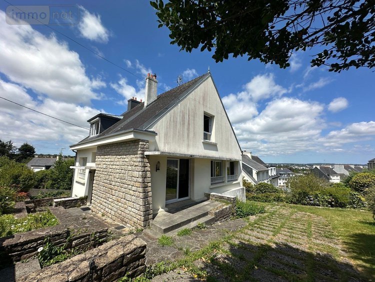 PENHARS - Située au calme, en impasse, et offrant toutes commodités, bus et écoles à pied, cette vaste maison familiale par excellence édifiée entre 1957 et 1958 sur un terrain de 471m² offre vie de plain-pied et grand sous-sol. Elle se compose au rez-de-chaussée d'une entrée, d'un palier et dégagement donnant sur séjour, cuisine, chambre, salle de bains et WC indépendants. L'étage comprend quant à lui un palier, un WC avec lave-mains suffisamment spacieux pour envisager d'y créer une salle de bains, trois chambres dont une avec un débarras de part et d'autre.