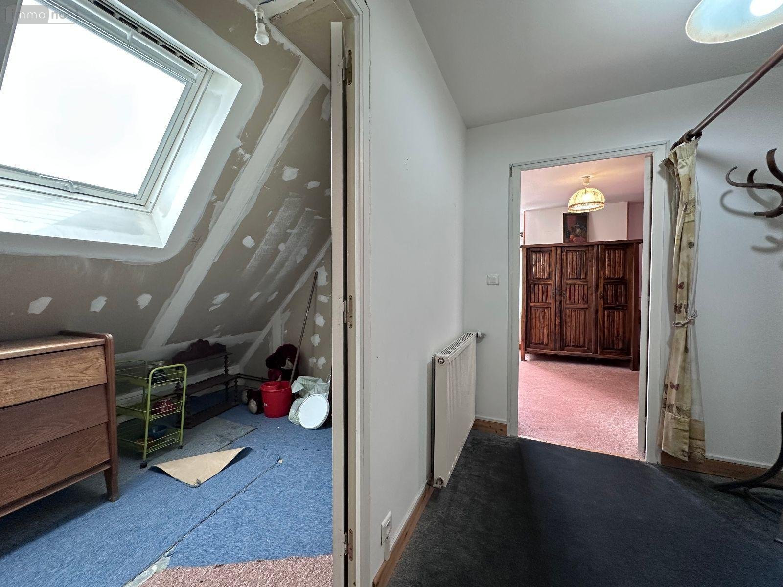 L'étage comporte un espace ouvert pouvant faire office de bureau ou bibliothèque, deux chambres et une pièce pour rangement. Non mitoyenne, elle offre également un sous-sol total, possibilité de se garer dans la propriété et un petit jardin arboré très charmant.