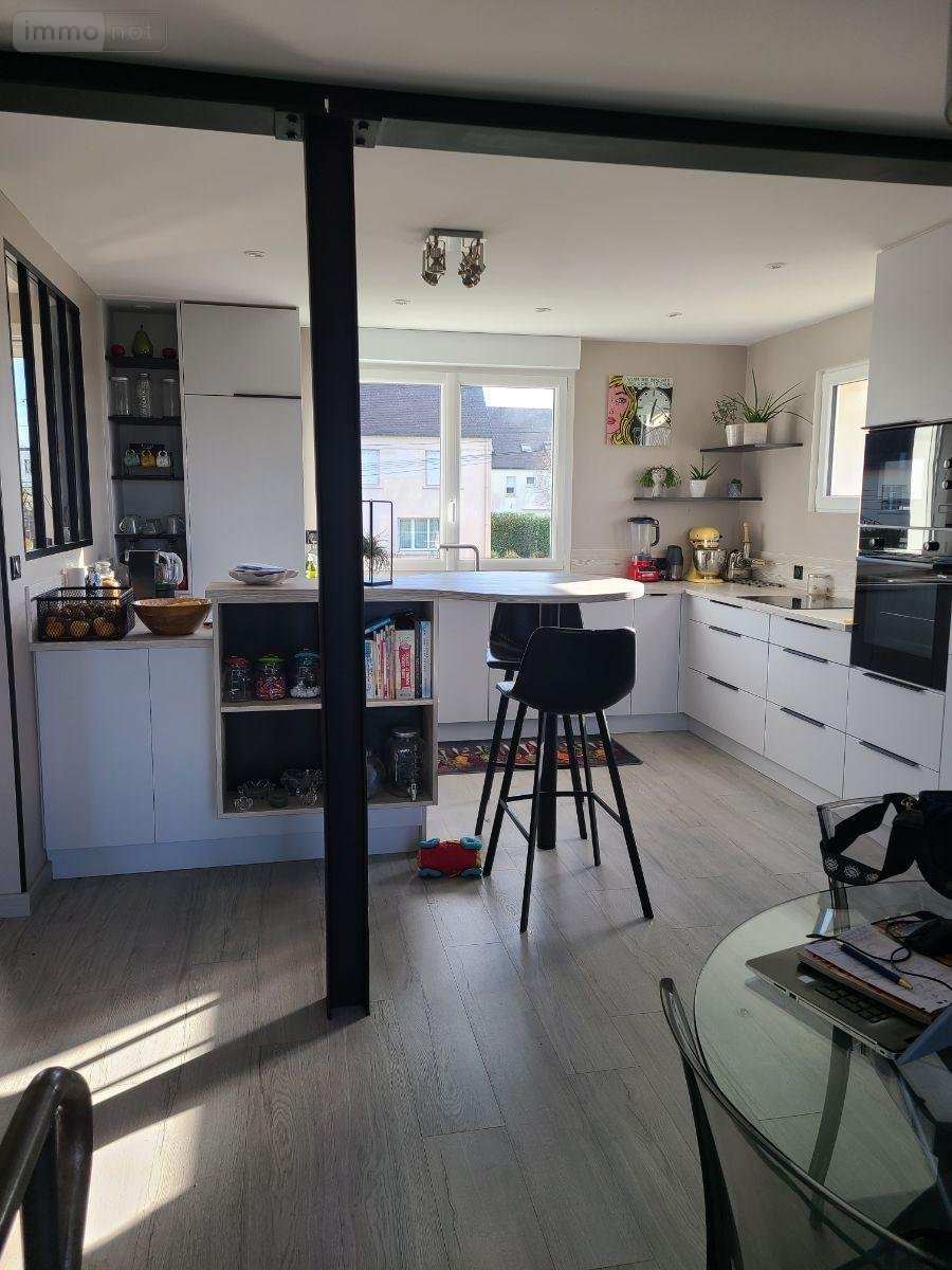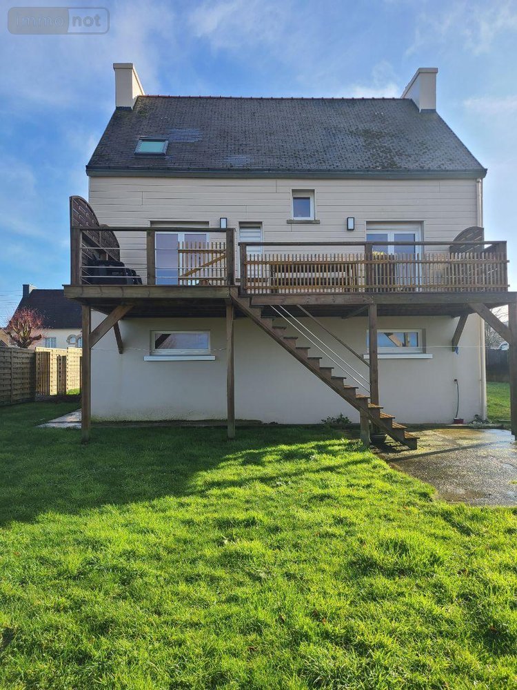 Maison a Vendre à EDERN, en Finistère Sud (29), en impasse dans le Bourg, Belles Prestations pour cette Maison d'habitation élevée sur Garage comprenant entrée avec dégagements, Salon Séjour de 60 m² avec Poêle à Granulés, Ouvert sur Cuisine aménagée et équipée et Terrasse expo Plein Sud,