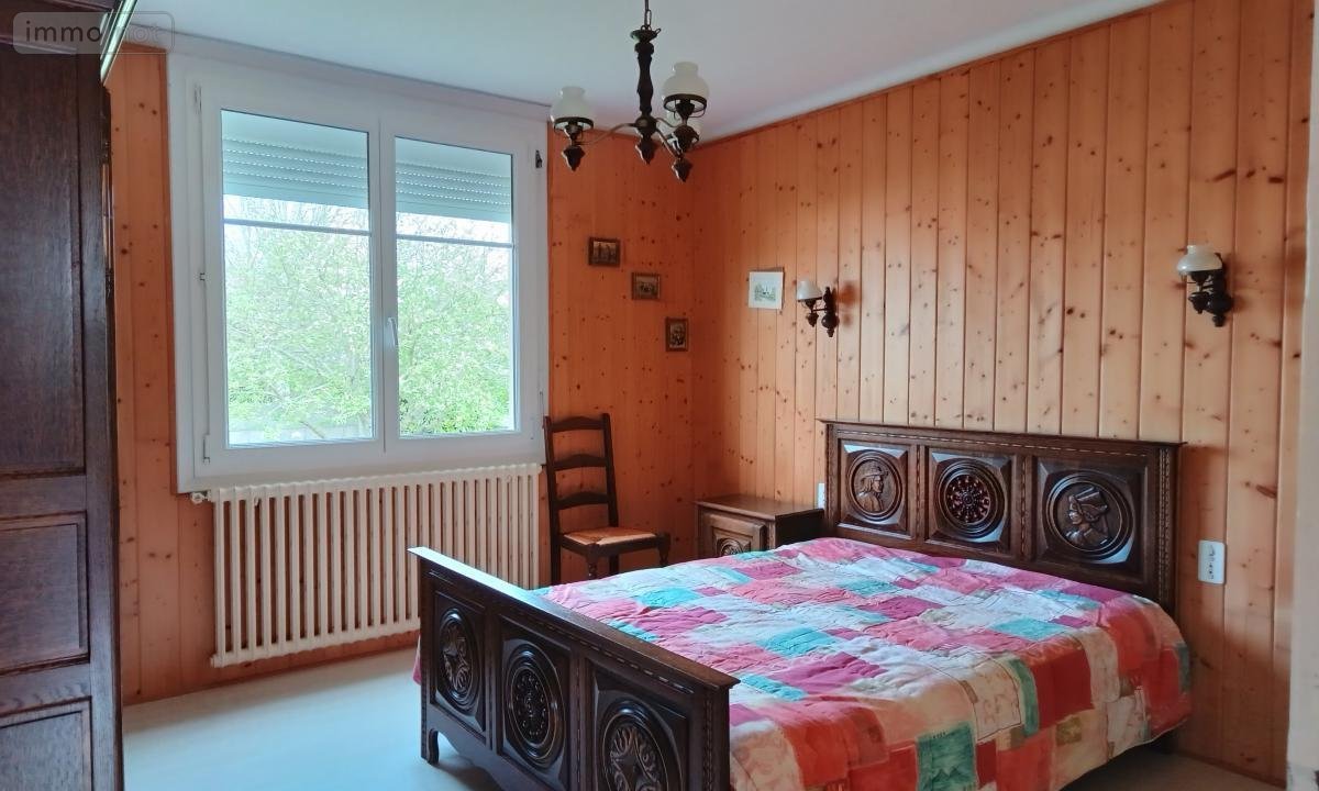 Quartier calme - proche commerces et parc de loisirs - propriété surélevée sur sous-sol (garage - buanderie- chaufferie) et à l'étage cuisine aménagée, salle, salle d'eau, toilettes, trois chambres - jardin 380 m²