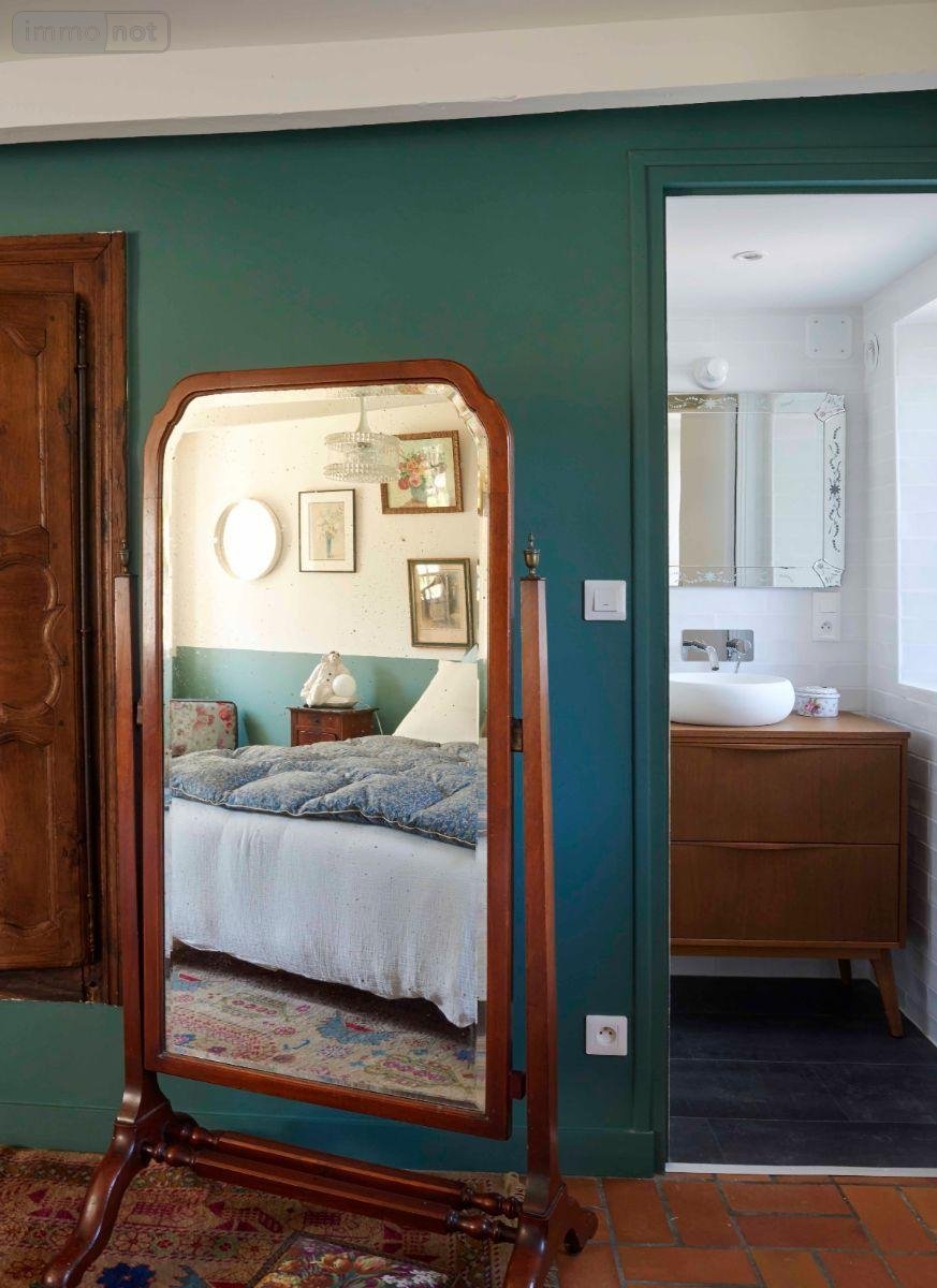 L'étage se compose de trois chambres (deux avec salle d'eau privative) et WC, une salle d'eau, un bureau faisant office de chambre d'enfants et un WC avec lave-mains.