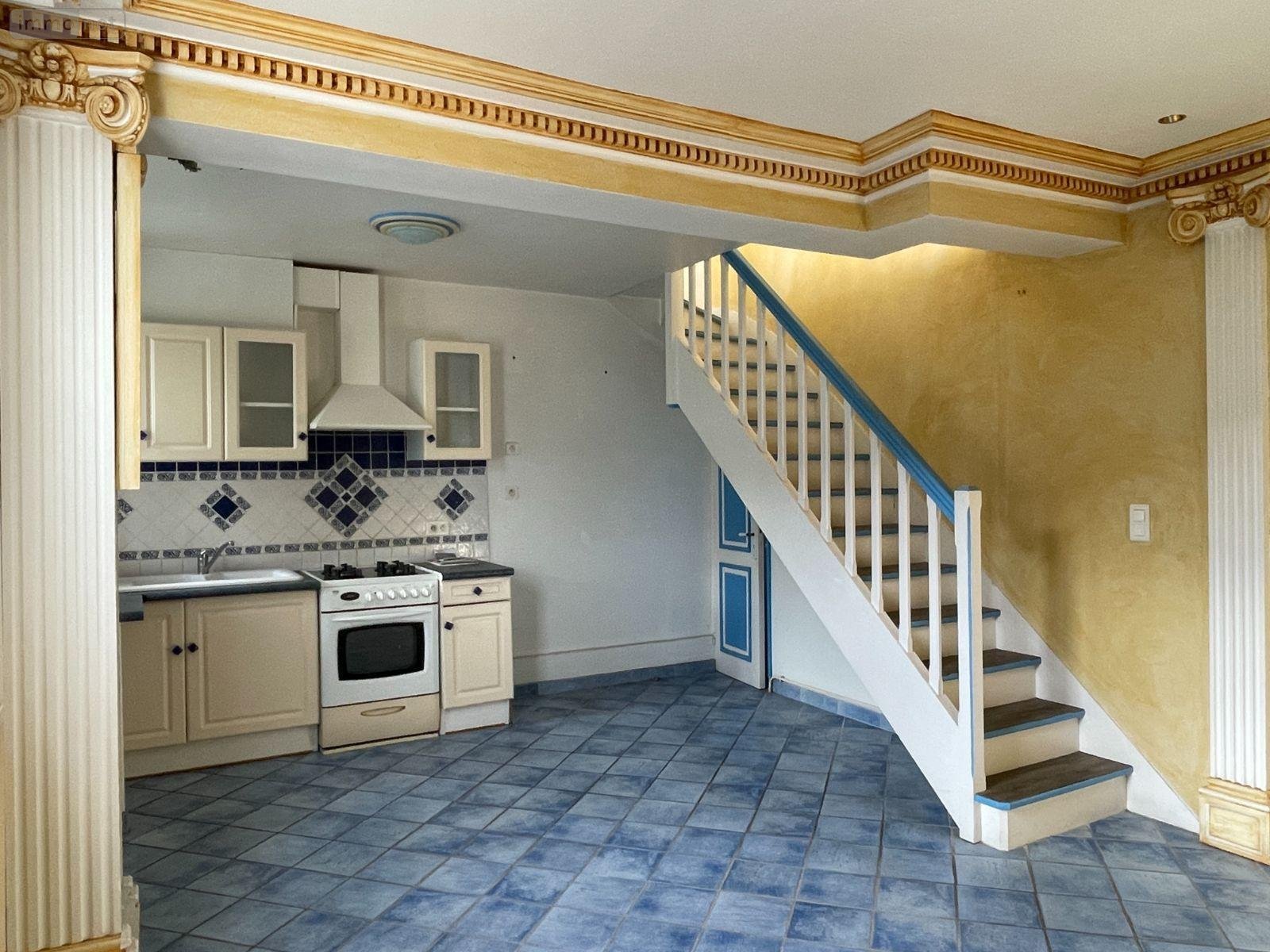 au rez-de-chaussée : un sas vitré donnant sur la pièce de vie avec espace cuisine semi aménagée / espace repas / salon, une salle d'eau / WC ; l'étage est dotée de deux pièces en enfilade à usage de chambres, l'une en mezzanine.