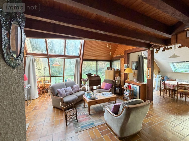La propriété est entourée d'un terrain de 1.185 m², avec une partie terrasse et une partie potager.