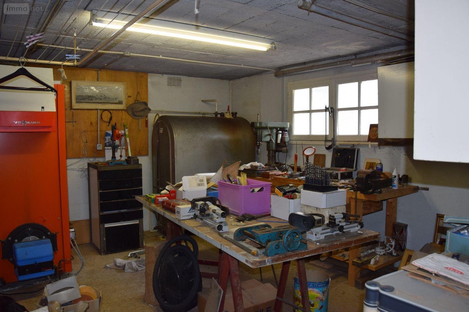Proximité CENTRE - Au calme, maison sur sous-sol complet bâtie sur 382 m2, d'environ 131 m2 habitables, comprenant : hall d'entrée, cuisine aménagée, séjour ( cheminée ), 4 chambres ( dont une au rez-de-chaussée avec salle d'eau - douche ), salle de bains commune, lingerie ( ou petite chambre ). Garage et diverses pièces utilitaires en sous-sol.