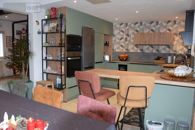 - Pièce de vie avec salon ( poêle à bois bûches ), cuisine aménagée, espace repas aménagé