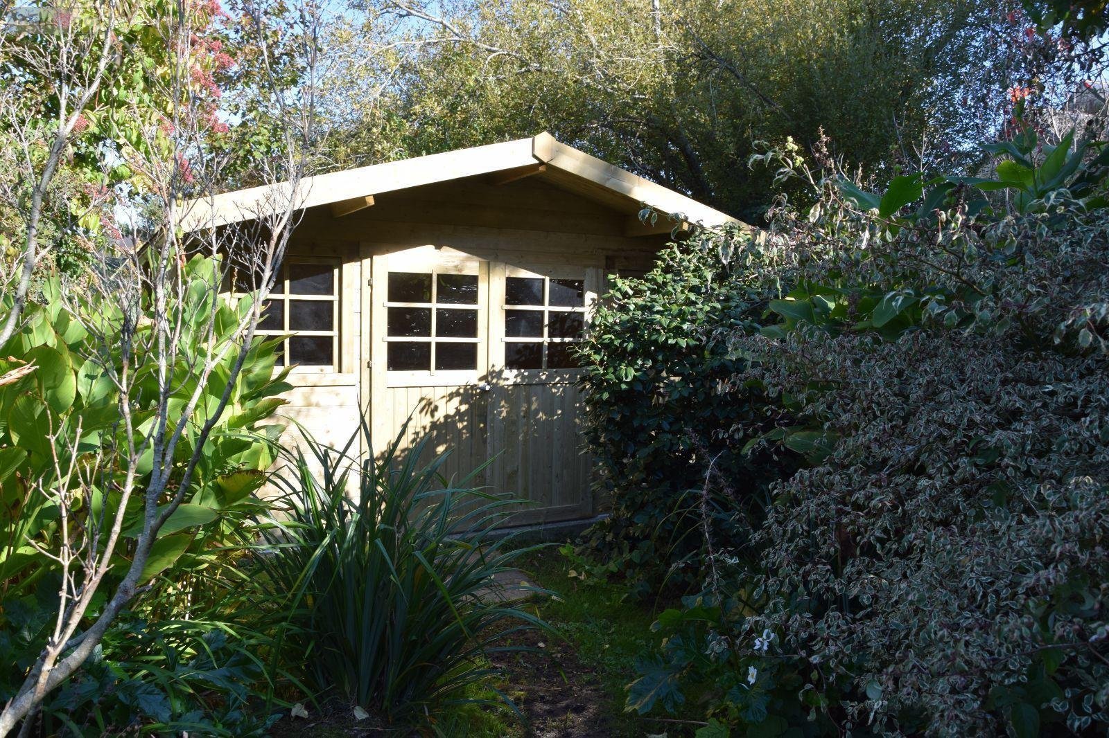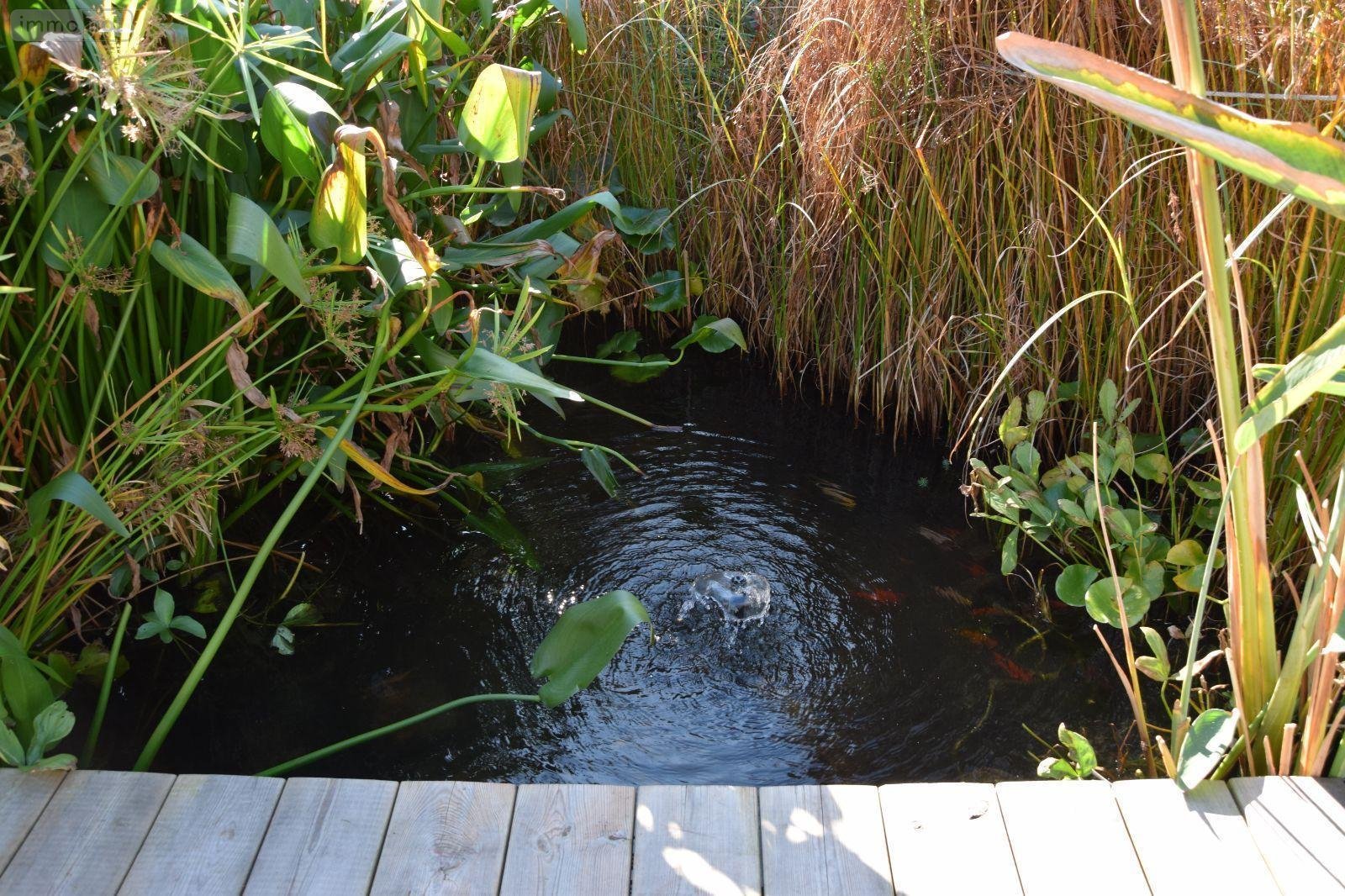 Sa terrasse en bois profite d'un petit bassin et d'une vue arborée sans vis à vis.