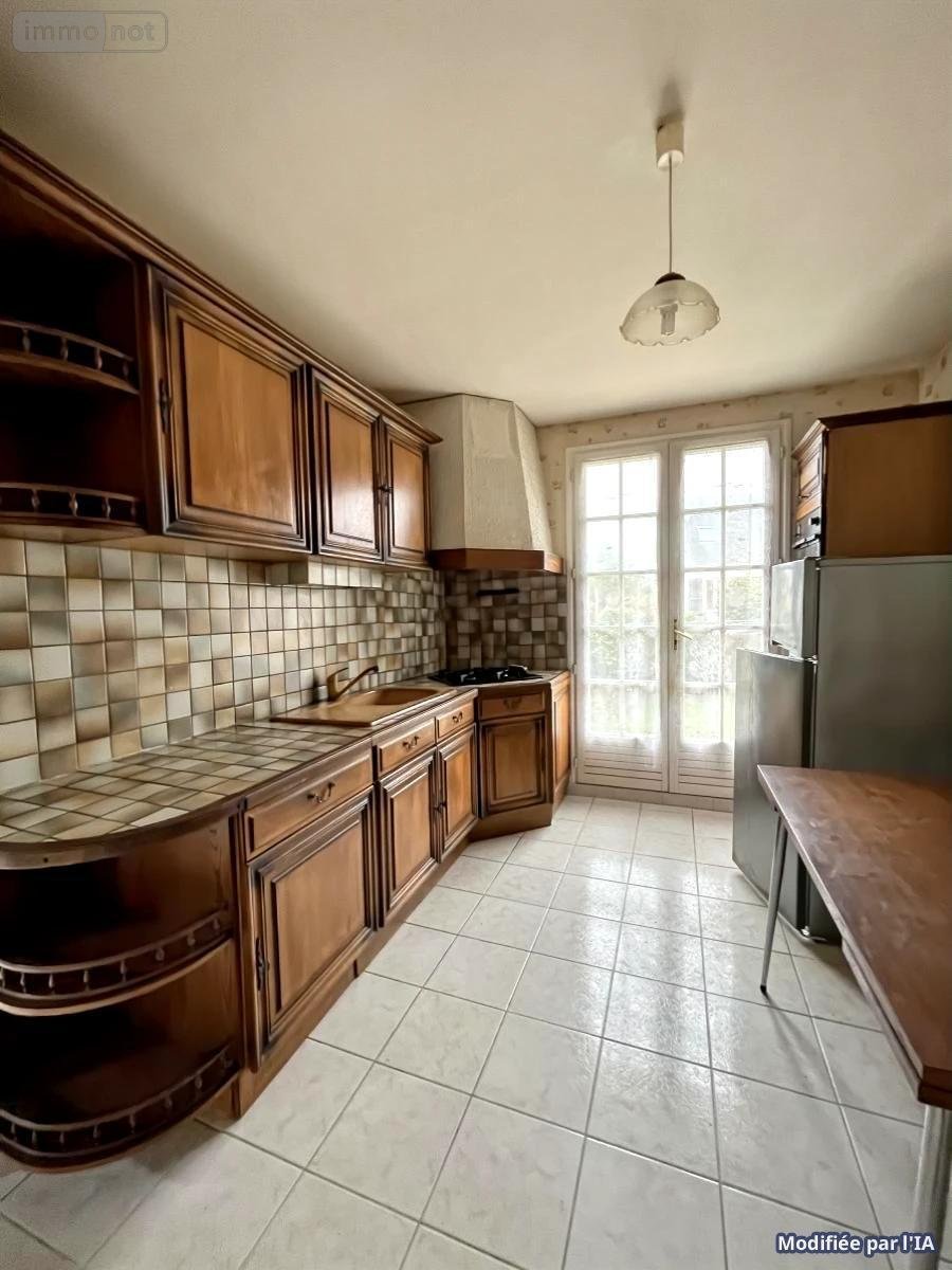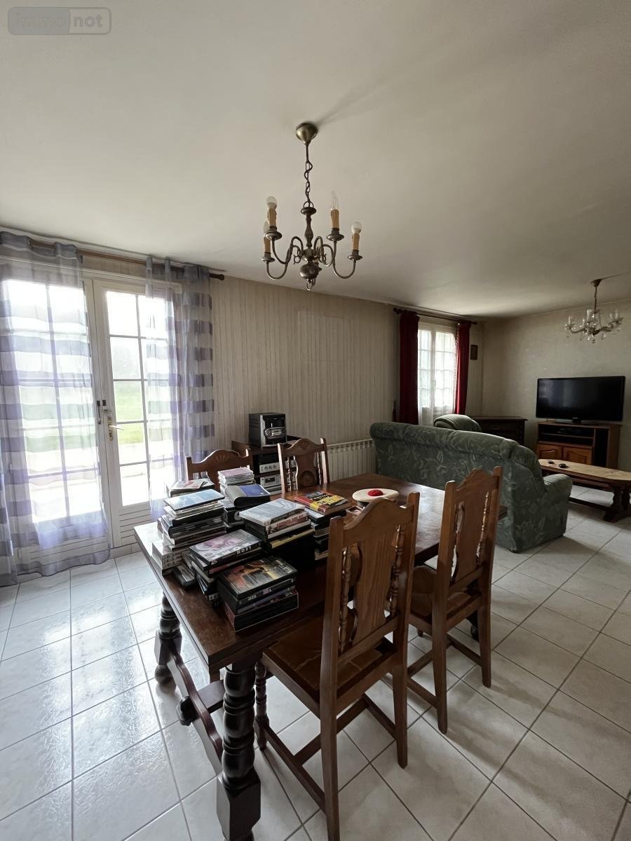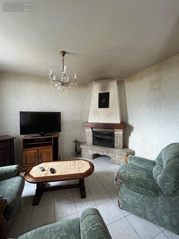 . Entrée, cuisine aménagée, séjour/salon (cheminée insert), trois chambres, salle de bains, wc, cellier, garage avec grenier au-dessus.