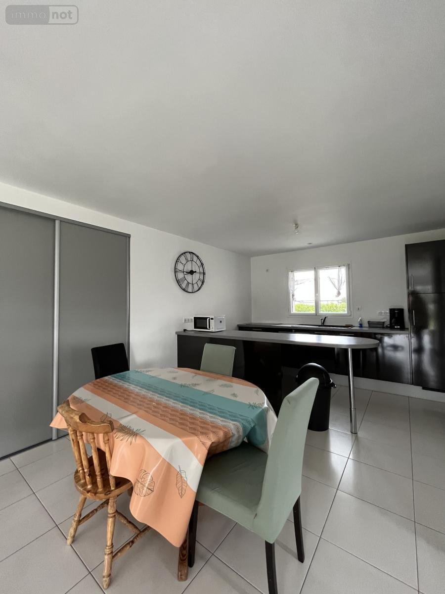 . Entrée, séjour/salon/cuisine aménagée ouverte, trois chambres, salle de bains/d'eau, deux wc dont un avec lave-mains, cellier, garage.