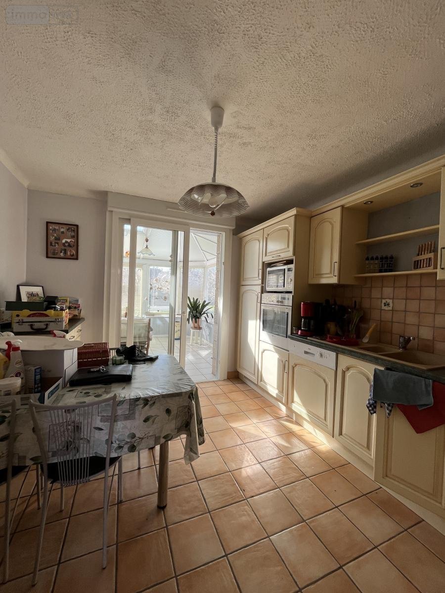 . Au rez-de-chaussée : Entrée, cuisine aménagée, séjour/salon (cheminée) donnant sur une grande et agréable véranda, chambre, salle d'eau, wc,