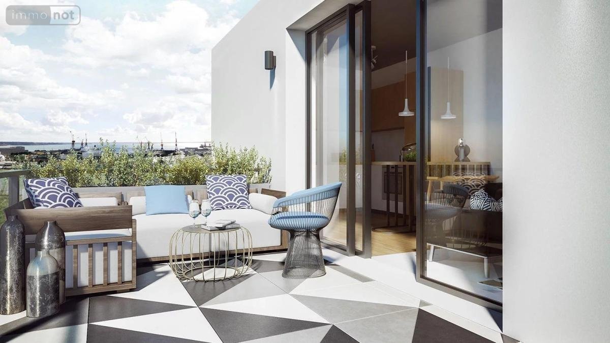 BREST - SAINT MARC - GUELMEUR - Quartier résidentiel avec vue mer, entourée d'un parc arboré de 7000m², dans résidence de standing avec piscine, appartement T4 de 102.65 avec terrasse (19.15 m²) Exposition sud/ouest. Il se compose d'un hall d'entrée avec placard, pièce de vie avec coin cuisine donnant sur terrasse, une suite parentale avec terrasse, deux chambres, salle d''eau, wc. Deux emplacements de parking. Belles prestations. Environnement rare et privilégié. Sera soumis au régime de la copropriété. Lots : 54.