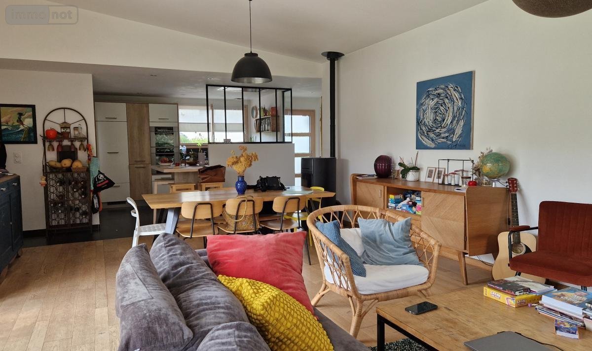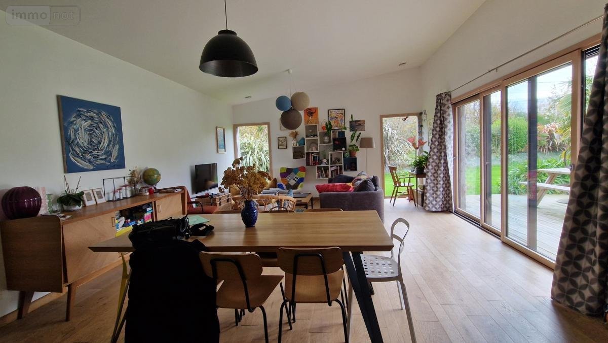 A proximité immédiate du bourg de LOCQUENOLE, sur une parcelle de terrain de 1085 m², belle maison contemporaine de PLAIN-PIED de 118 m² habitables. Entrée avec rangements, cuisine aménagée et équipée ouverte sur un grand salon-séjour avec poêle à granulés, arrière cuisine-buanderie, chambre parentale avec dressing et salle d'eau, bureau, deux chambres, salle de bains et wc. Terrasse au sud-ouest. CAVE de 40 m². Maison en bois, lumineuse et chaleureuse avec son sol en bois massif.