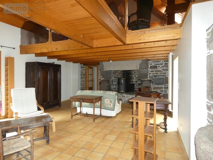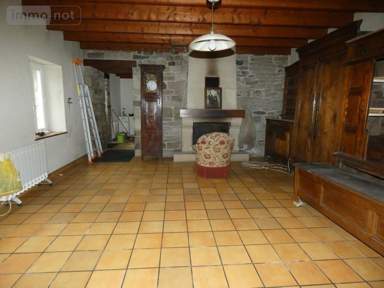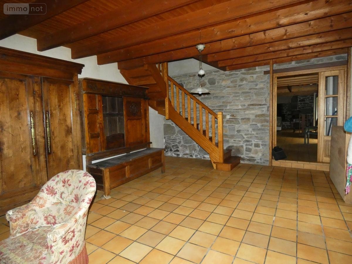 BERRIEN, en campage, ancien corps de ferme comprenant une maison d'habitation rénovation par architecte, composée d'une cuisine ouverte sur séjour, salon, cellier, wc, sdb. A l'étage : 2 chambres, 2 chambres en mezzanine. Hangar, écuries, garage, dépendances. Plusieurs pâtures, 6HA.