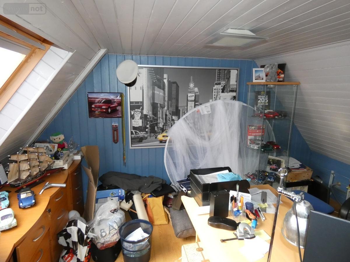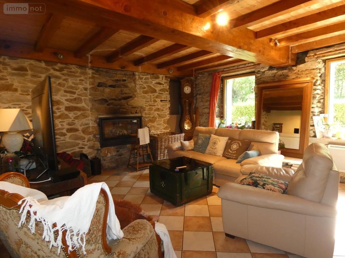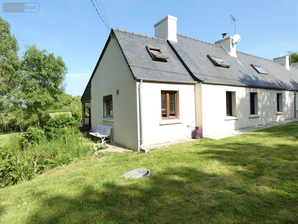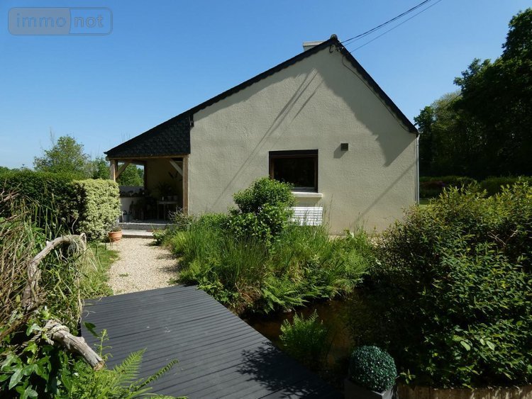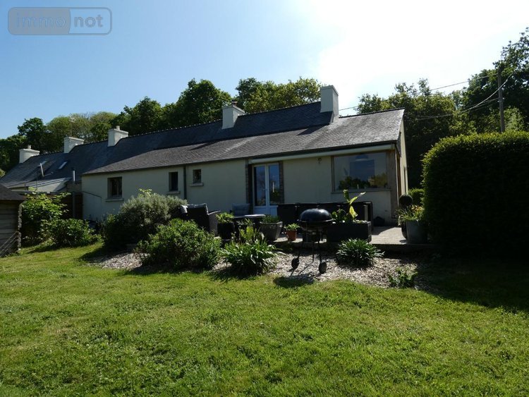 MORLAIX, en campagne, longère comprenant entrée, cuisine, salle à manger, salon avec cheminée, salle d'eau, wc, chambre avec bureau en mezzanine, cellier. A l'étage : 2 chambres. Terrain paysager avec étang, hangar 120 m², terrain 4265 m².