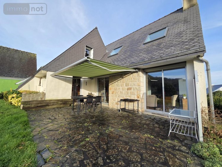 LOCQUENOLE, belle maison de 1983 avec vue sur le Dourduff, située en plein coeur du village, comprenant entrée, cuisine ouverte sur séjour/salon avec insert, chambre, salle d'eau, wc. A l'étage : 3 chambres, bureau, salle d'eau avec wc. Sous-sol complet avec garage. Terrain 762 m².