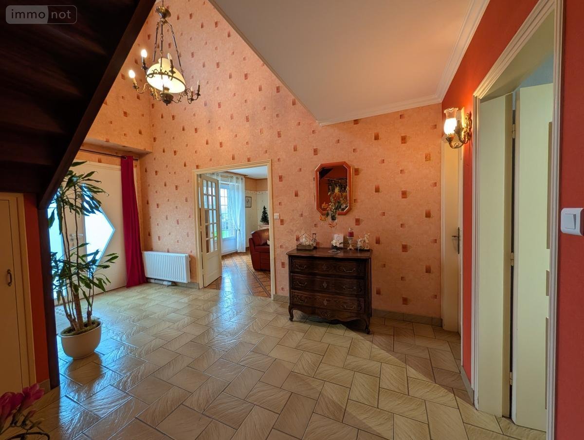 PLEYBER CHRIST, belle maison de 153 m² env comprenant entrée, cuisine, salon/séjour avec poêle à granules récent, cellier, bureau, chambre avec salle d'eau privative, buanderie. A l'étage : 4 chambres, salle de bains, wc. Hangars et dépendances. Terrain 8634 m².