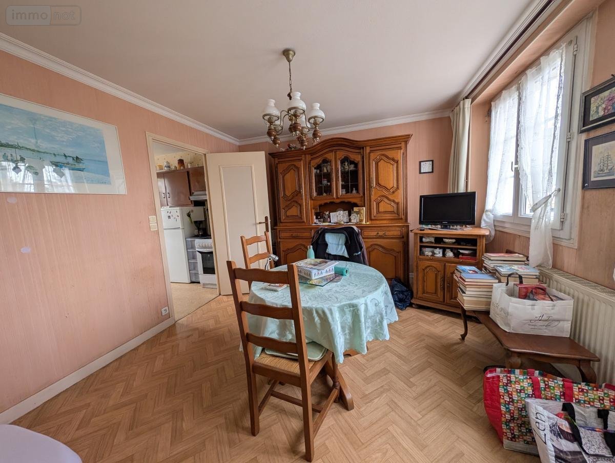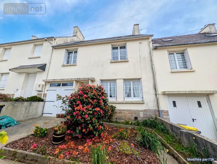 MORLAIX, proximité Coat Serho, maison mitoyenne comprenant entrée, séjour, cuisine, salle de bains. A l'étage : 4 chambres, wc. Garage. Terrain 162 m².