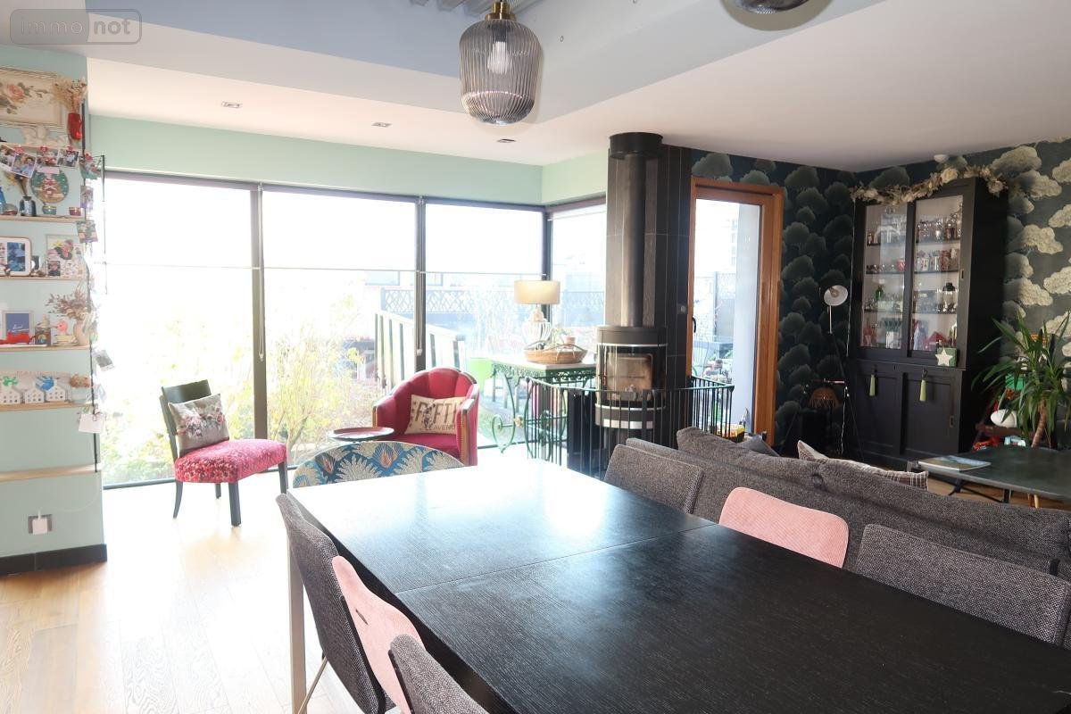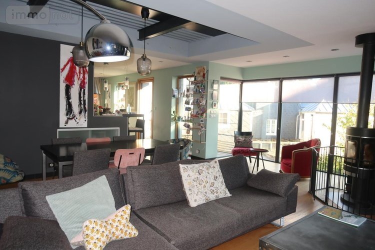 Seulement chez votre Notaire. Emplacement exceptionnel au coeur de Landerneau, pour cette maison d'architecte de 2007 offrant des volumes généreux avec une superficie habitable de 208 m². Elle comprend: Hall d'entrée avec placards, lingerie-cellier, buanderie, atelier, wc avec lave mains. A l'étage : séjour-salon avec terrasse (poêle à bois), cuisine équipée avec balcon, wc, bureau avec terrasse. Etage 2 : quatre chambres dont une avec salle d'eau-wc privative et dressing, salle d'eau-wc. Cour, Carport et Atelier.