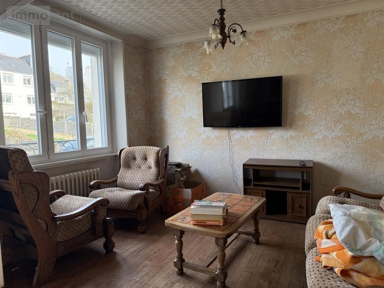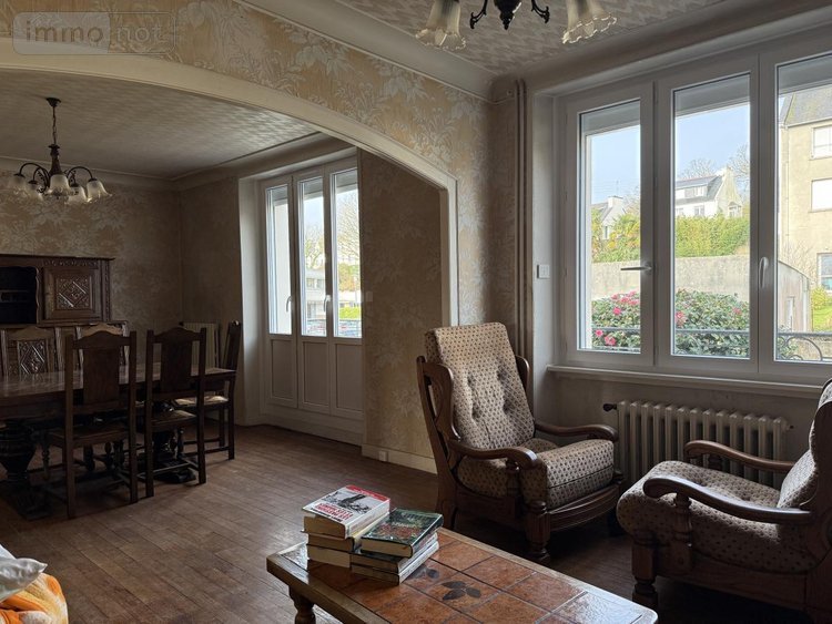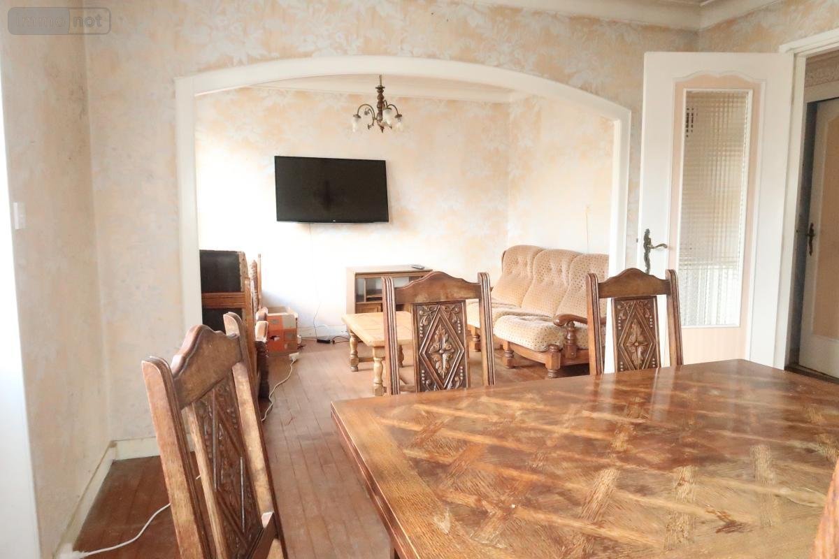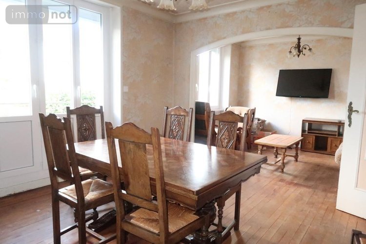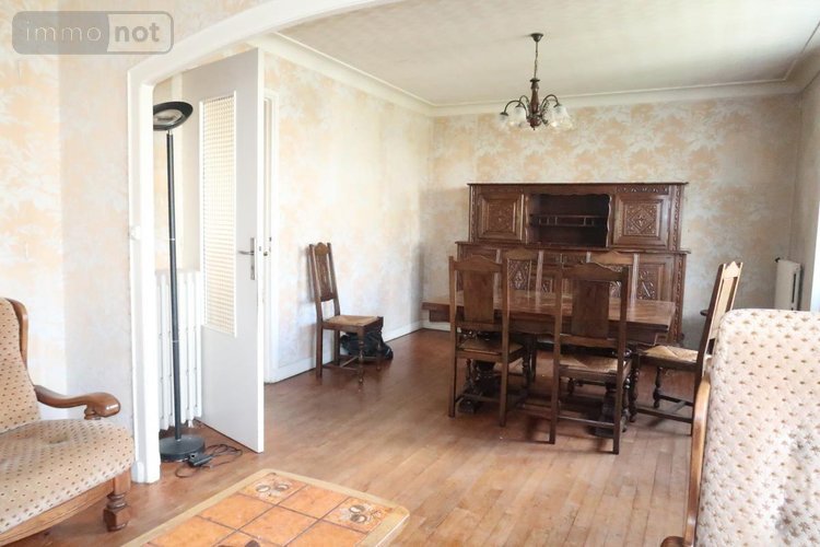 Maison mitoyenne sur cave, atelier, chaufferie et garage comprenant: entrée, séjour-salon, cuisine avec véranda, deux chambres avec placard, salle d'eau, wc. A l'étage: palier, deux chambres, grenier aménageable. Jardin